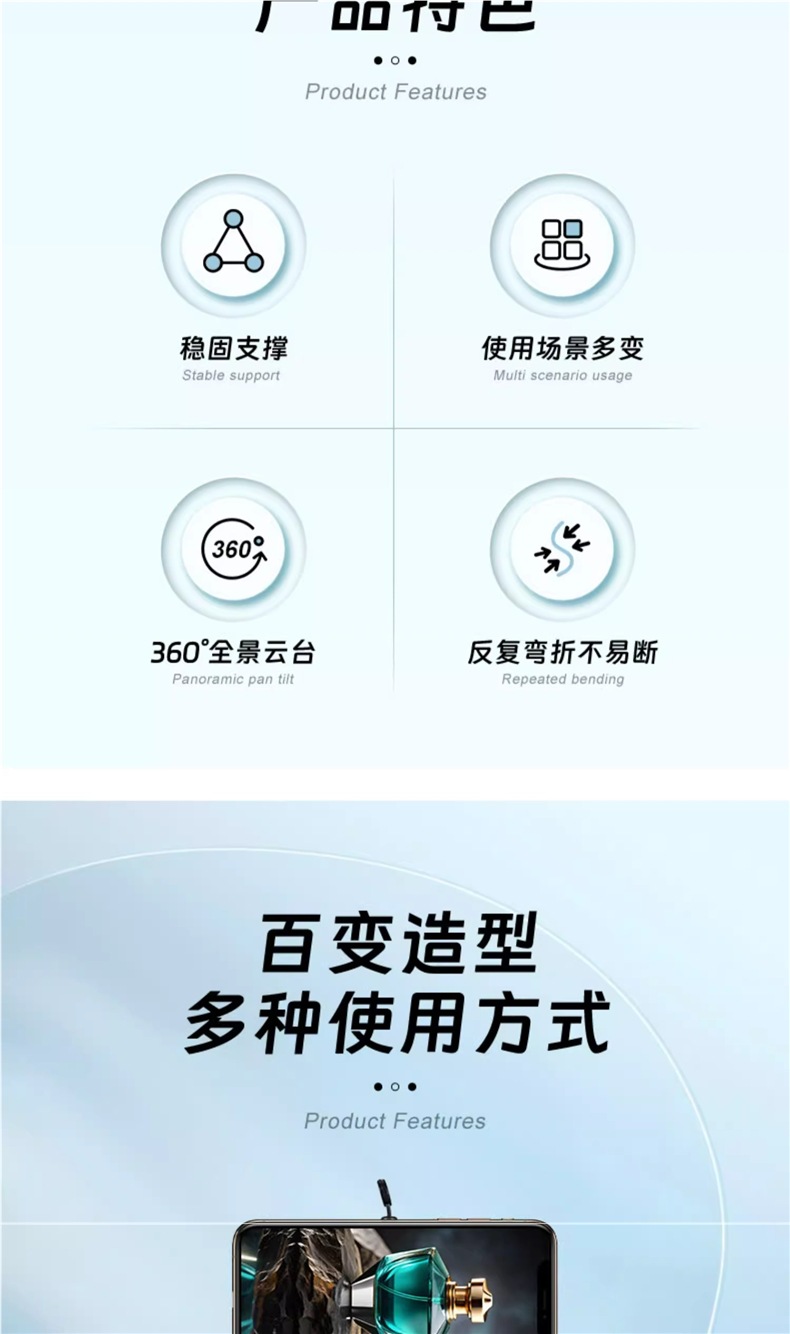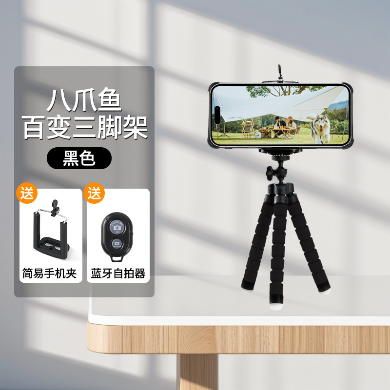 • 업그레이드된 블랙 [문어 스탠드]에는 휴대폰 클립이 포함되어 있습니다.