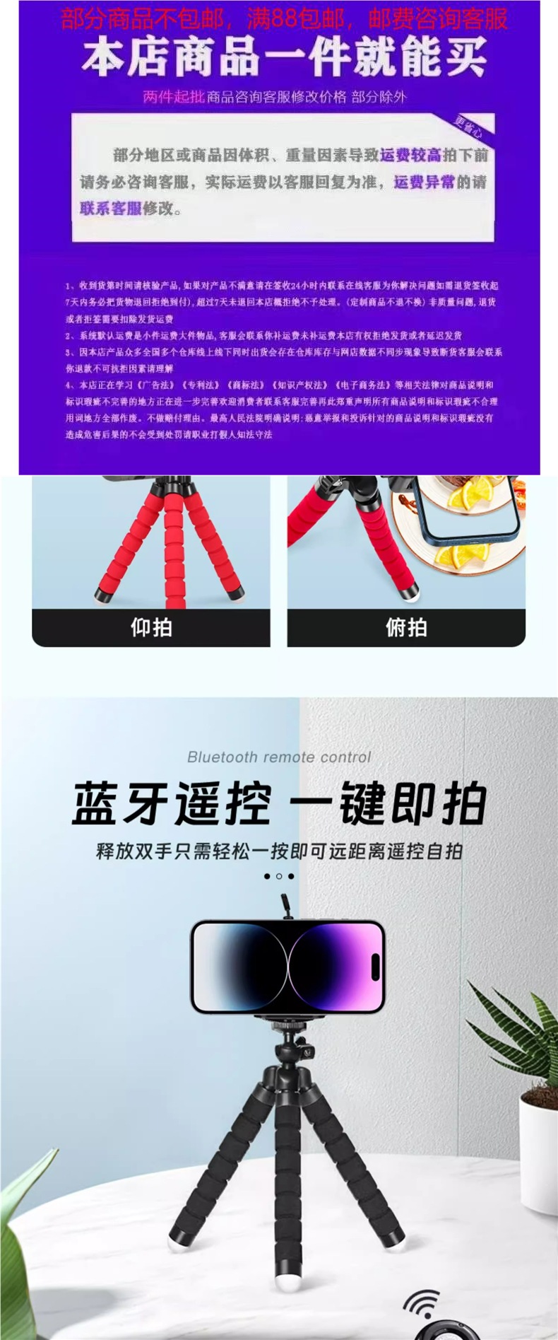 • 업그레이드된 셀카 모델 레드 [문어 스탠드]에는 블루투스 셀카 + 휴대폰 클립이 함께 제공됩니다.