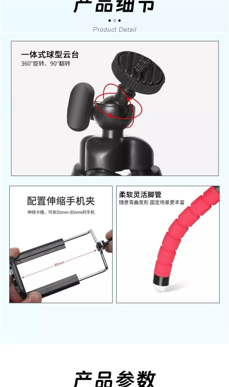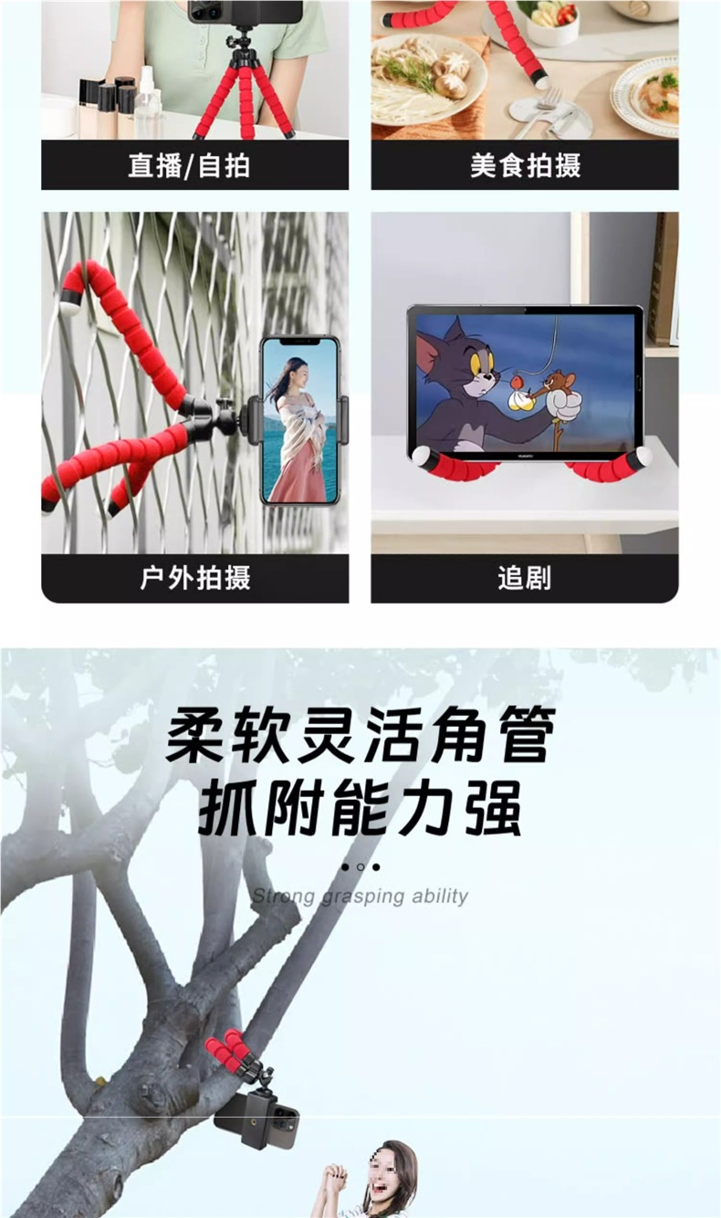 • 업그레이드된 레드 [문어 스탠드]에는 휴대폰 클립이 포함되어 있습니다.