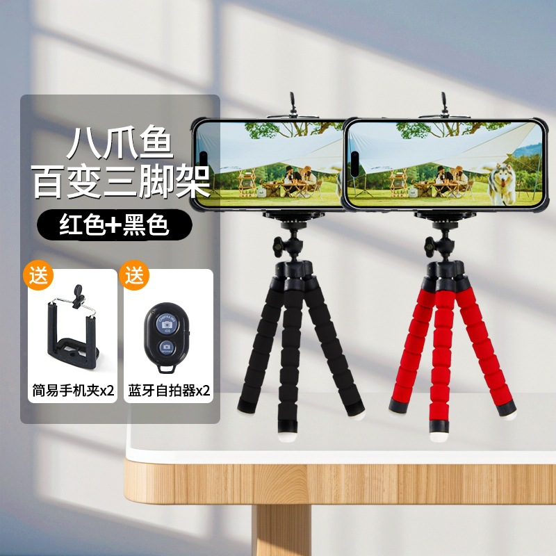 • 업그레이드된 셀카 모델 레드 + 블랙 [문어 스탠드]에는 블루투스 셀카 + 휴대폰 클립이 함께 제공됩니다.