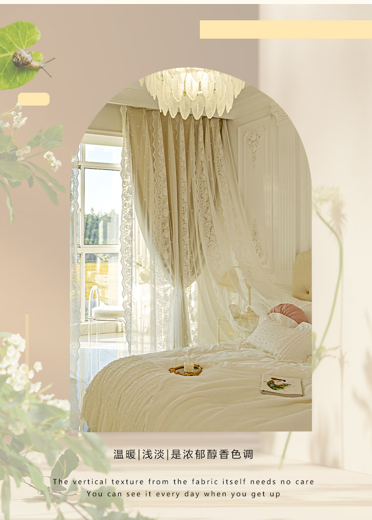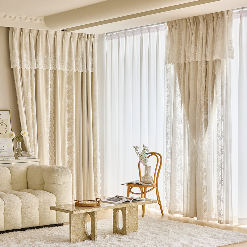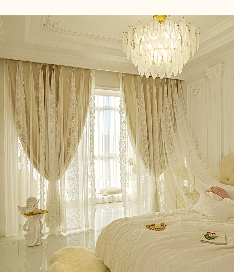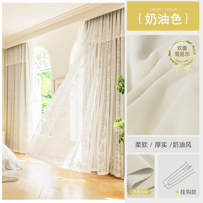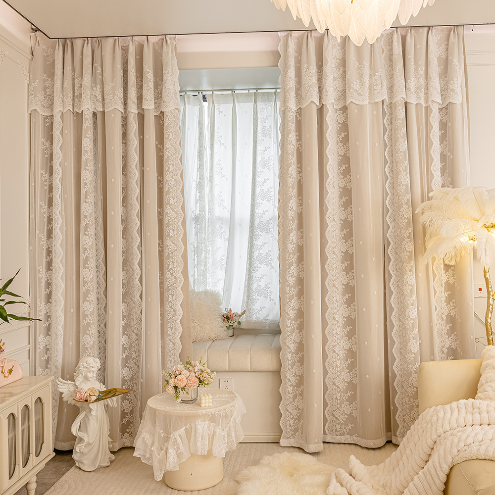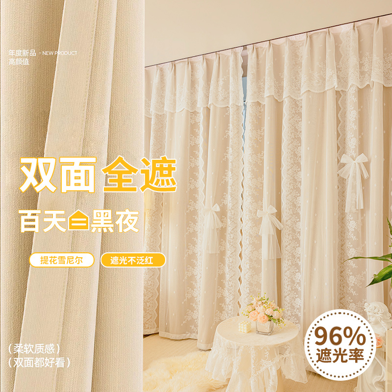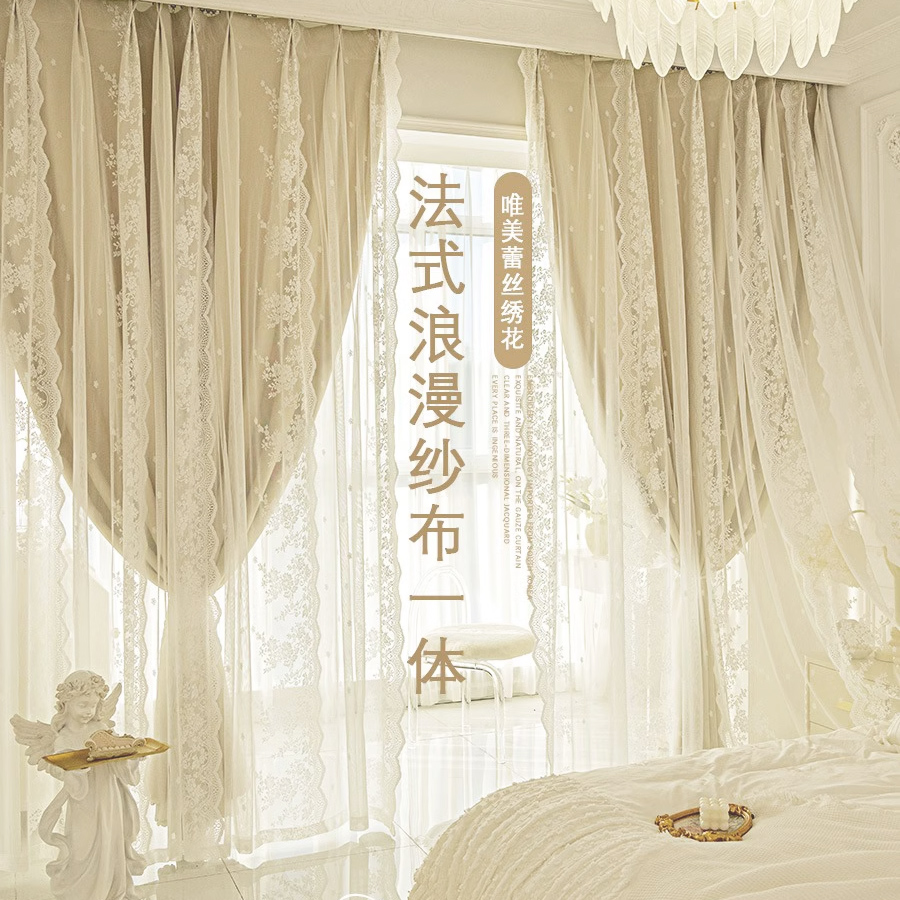 이중 레이어 차광 커튼 거즈 일체형 프린세스 스타일 프렌치 밀크티 컬러 인터넷 연예인 레이스 거즈 후크 스타일 완제품스토어 가기