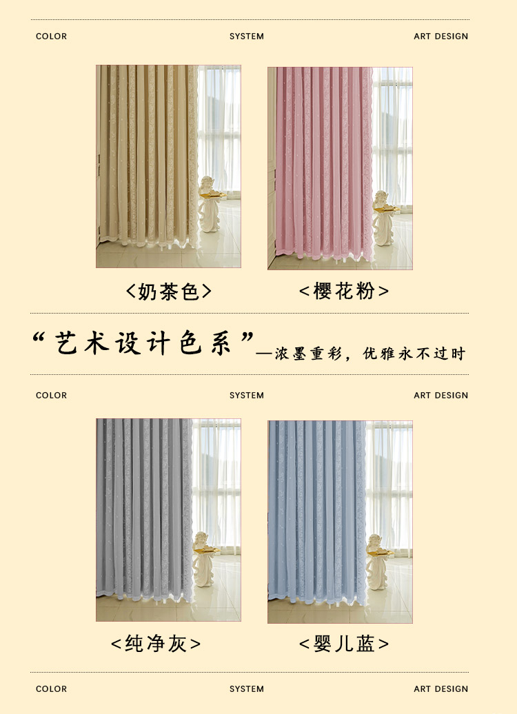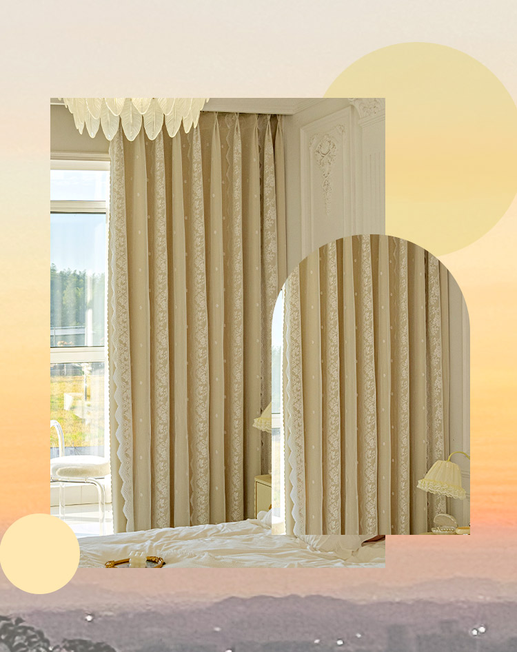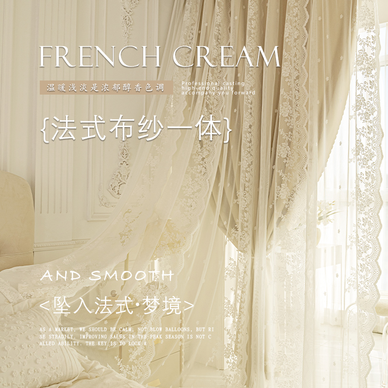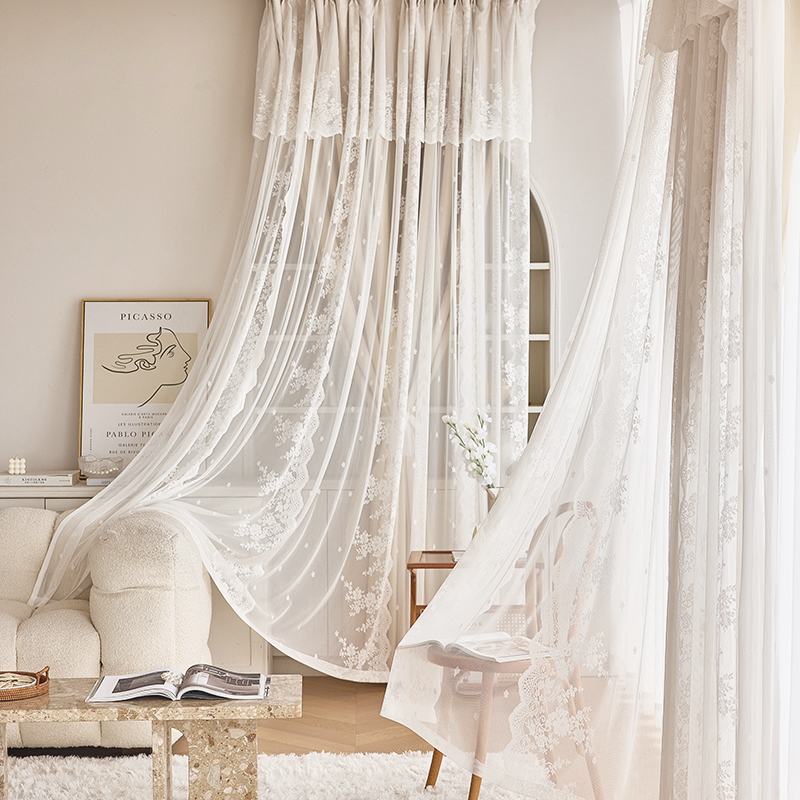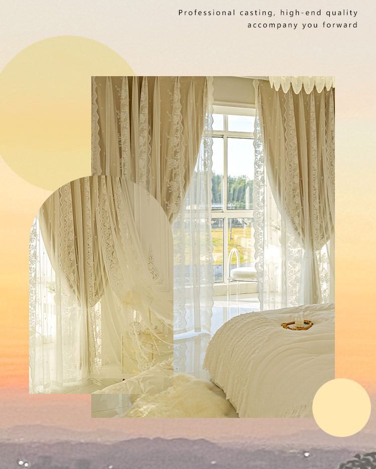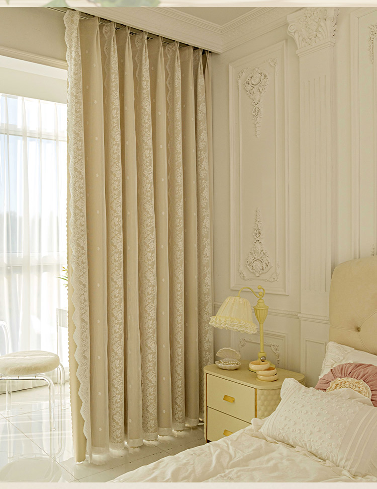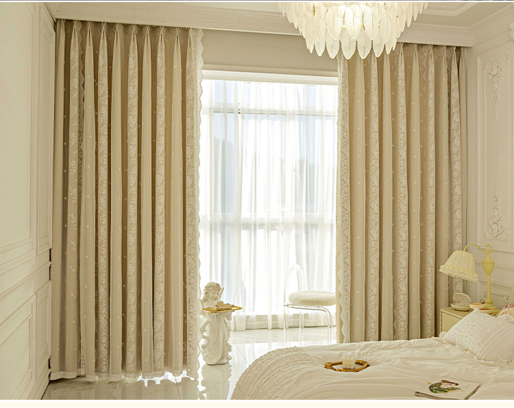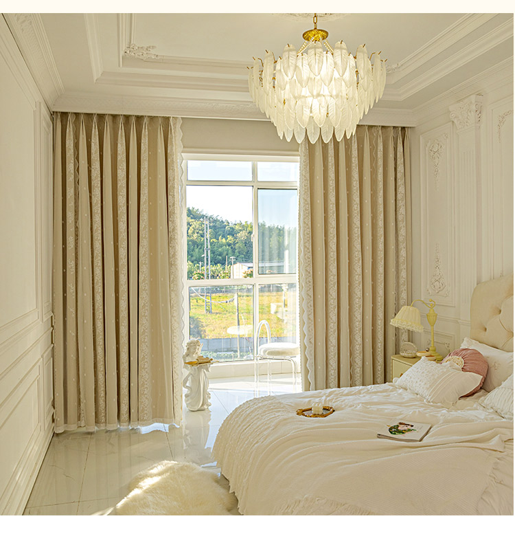 이중 레이어 차광 커튼 거즈 일체형 프린세스 스타일 프렌치 밀크티 컬러 인터넷 연예인 레이스 거즈 후크 스타일 완제품스토어 가기