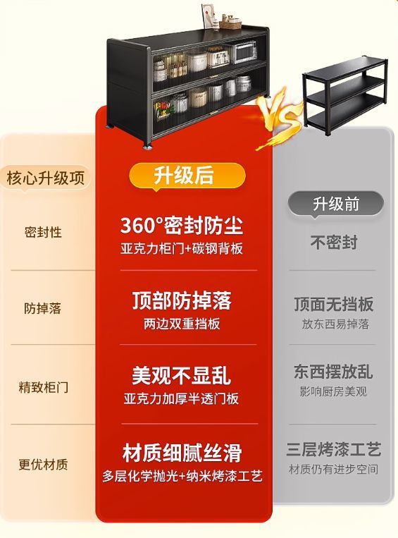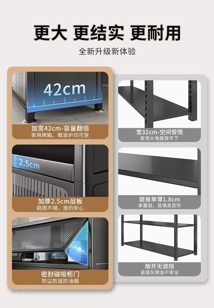 주방 수납장, 바닥형 다층 수납장, 도어가 있는 전자레인지 및 그릇 수납장, 다기능 수납장스토어 가기