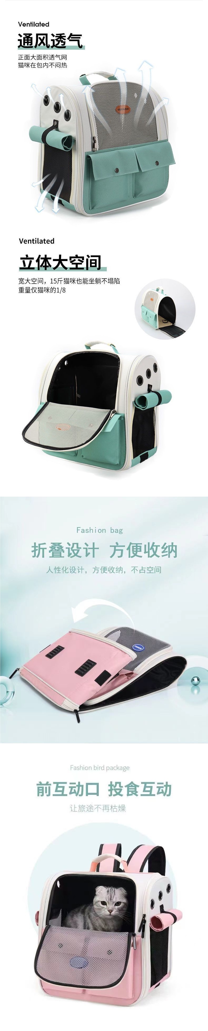 고양이 가방, 휴대용 공간 애완 동물 배낭 캐빈, 고양이 학교 가방, 개 어깨 케이지, 고양이 가방, 접이식 통기성 대형스토어 가기