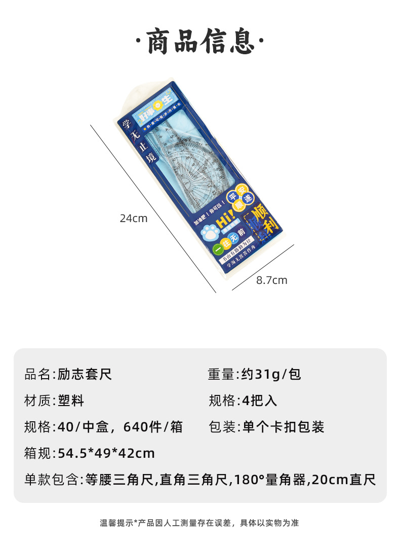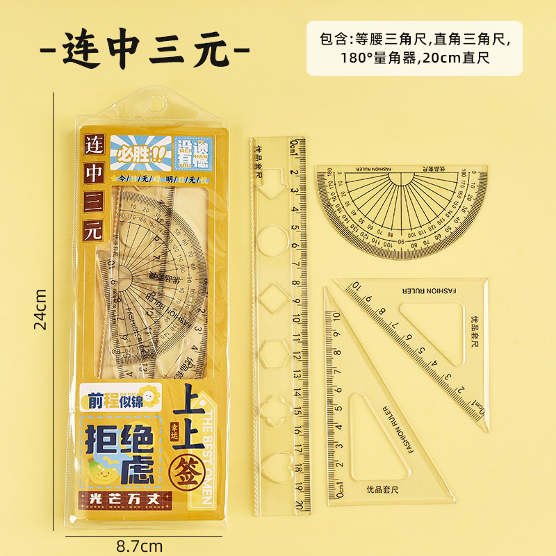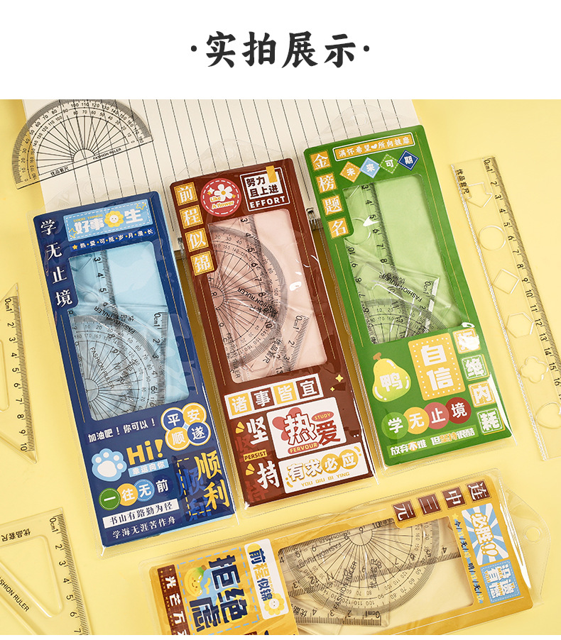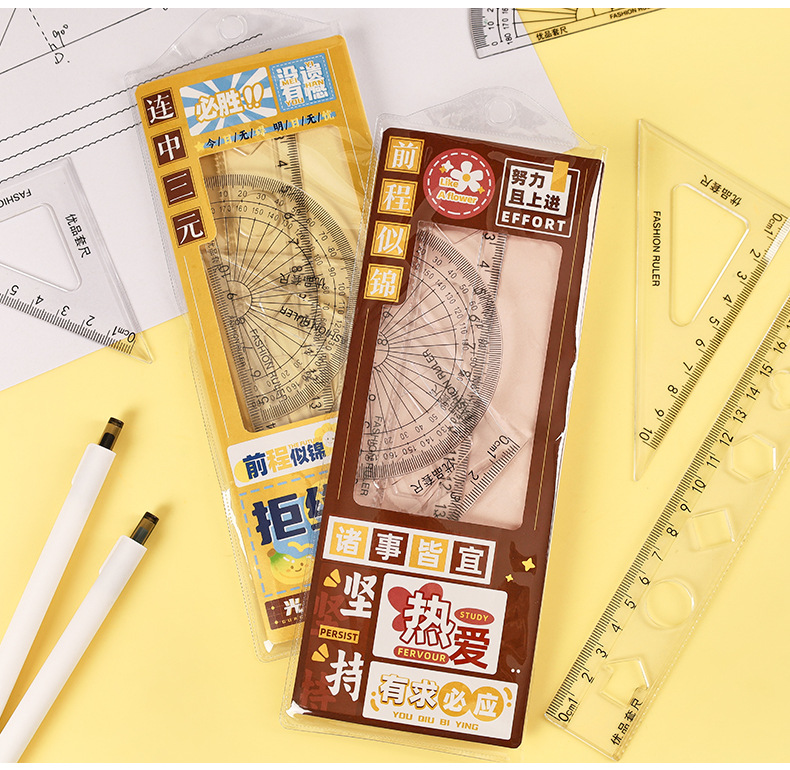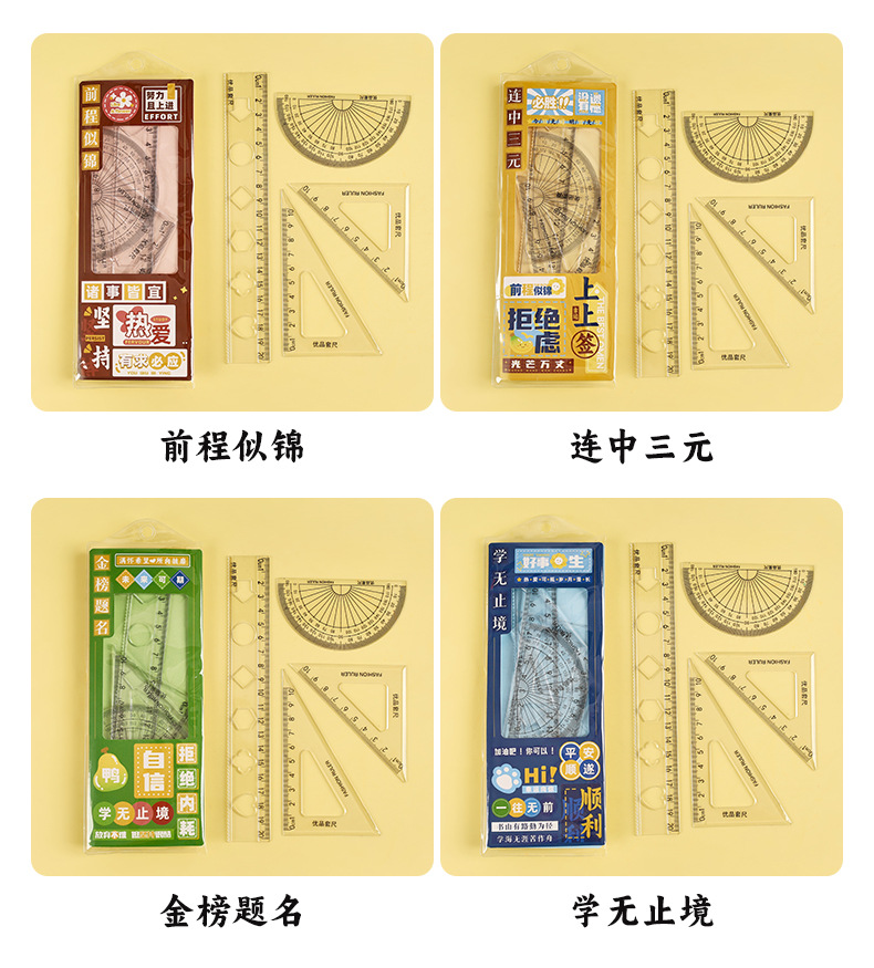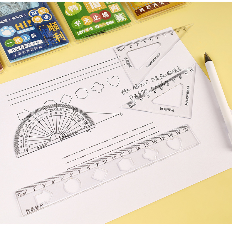 학생을 위한 창의적 영감을 주는 4피스 눈금자 세트, 고급스러운 투명 눈금자, 삼각판, 각도기, 눈금자 세트 도매스토어 가기