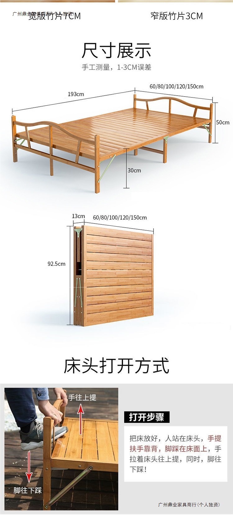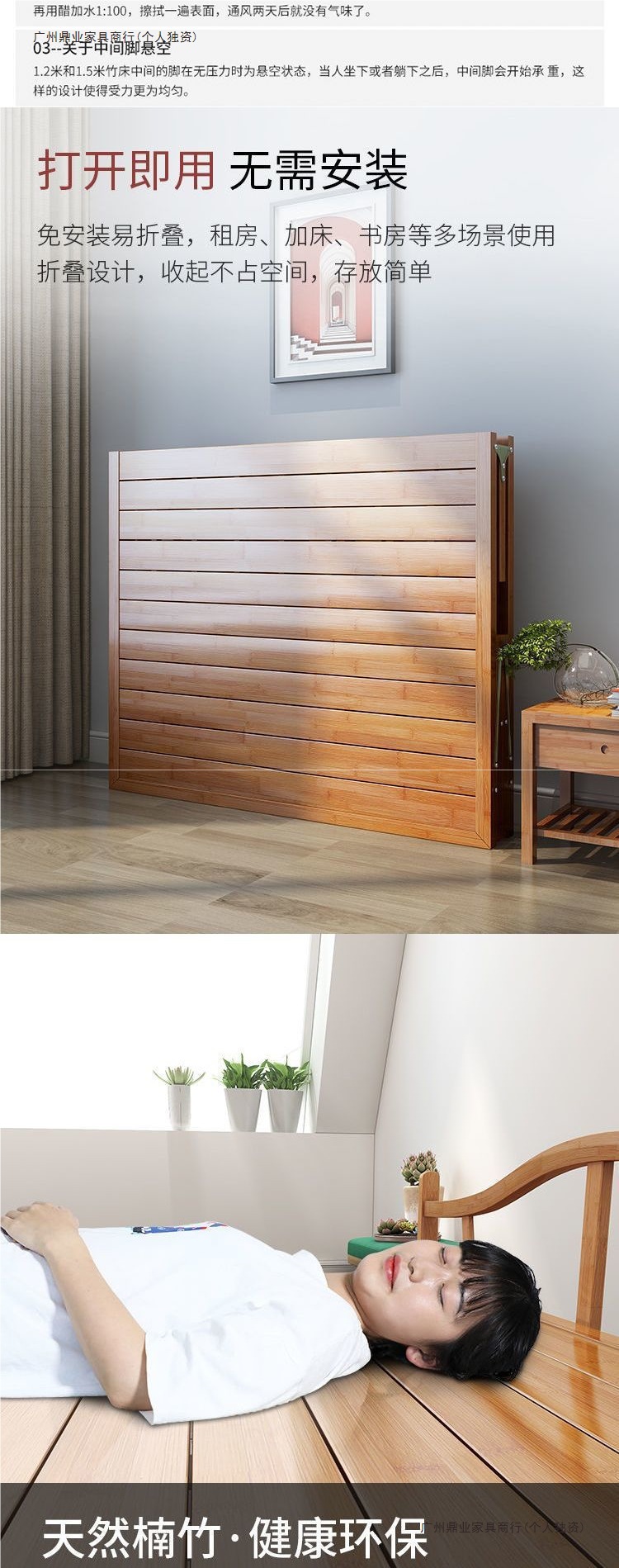 대나무 침대 접이식 침대 싱글 더블 홈 점심 시간 시원한 침대 성인 임대 주택 간단한 단단한 나무 침대 대나무 침대스토어 가기
