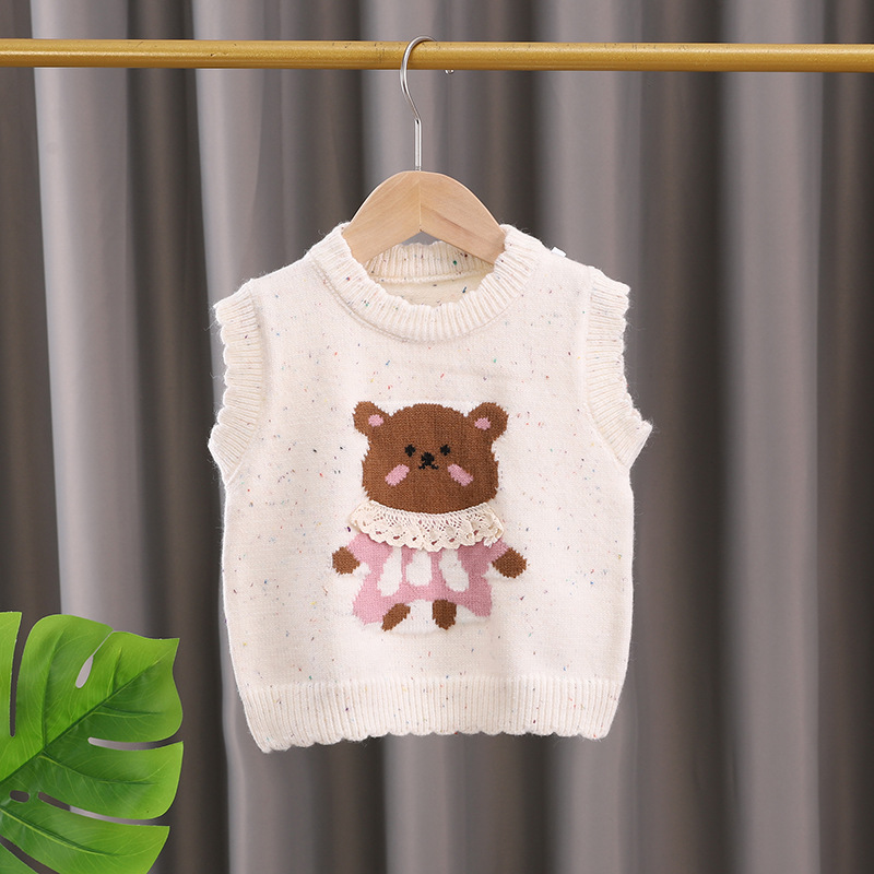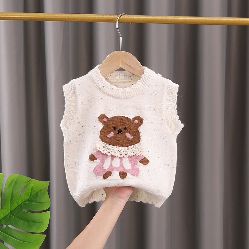 여자 니트 조끼 봄 2025 새로운 한국 스타일 외국 스타일 어린이 만화 아기 조끼 겉옷 양복 조끼 봄과 가을스토어 가기