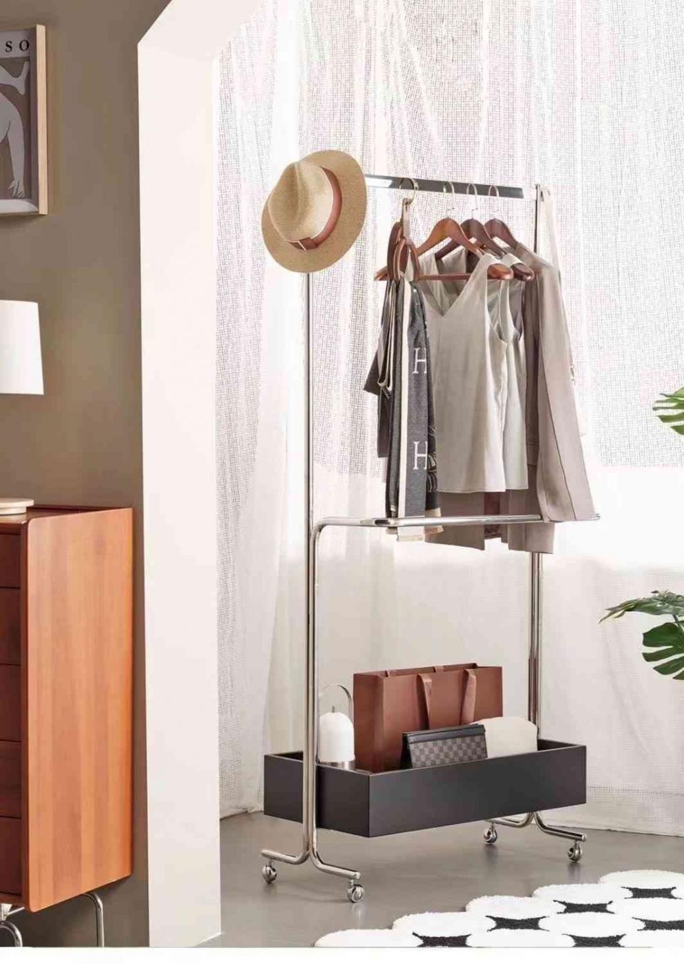 현대 중세 바닥 스탠딩 옷걸이 스테인레스 스틸 옷걸이 코트 랙 침실 모바일 의류 보관 코트 랙스토어 가기