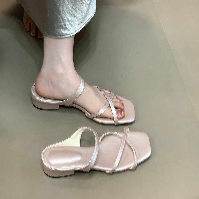 여성을 위한 프렌치 젠틀 크로스 스트랩 오픈 토 샌들, 여름 기질, 스퀘어 토, 패셔너블한 틈새 슬리퍼