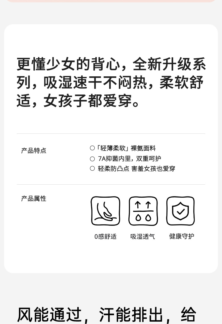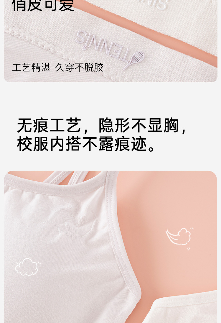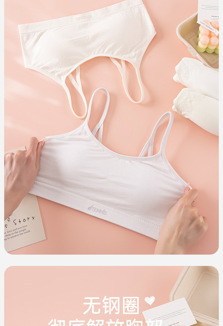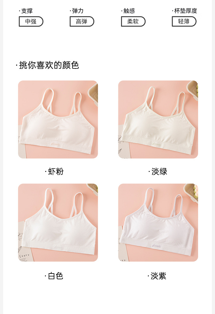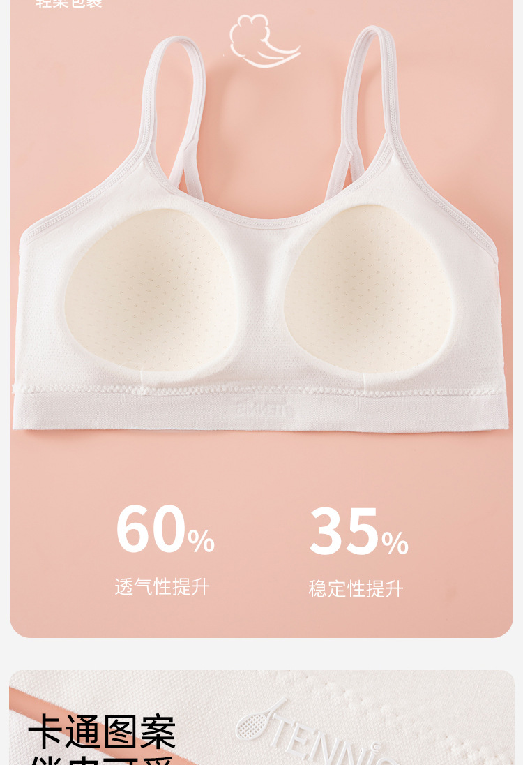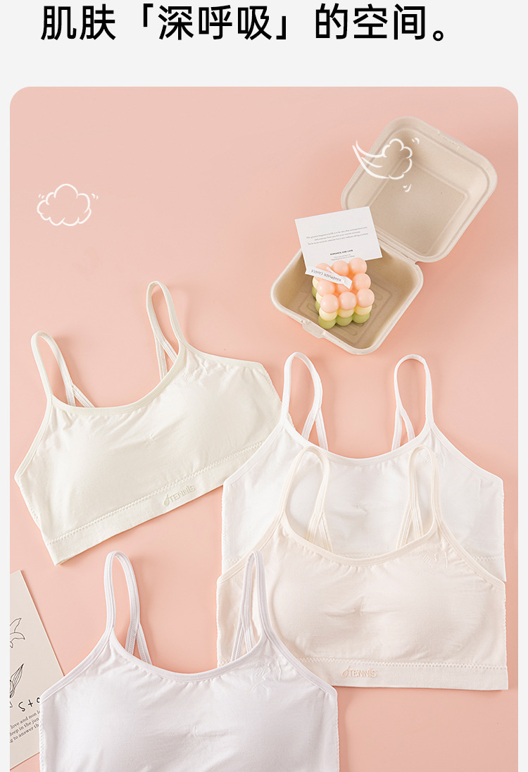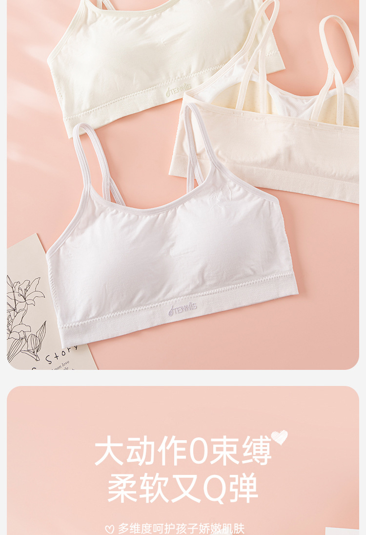 발달기 여아 속옷, 여아 고학년 고정컵, 중학생, 고등학생 스포츠 통기성 아름다운 조끼 스타일 브라