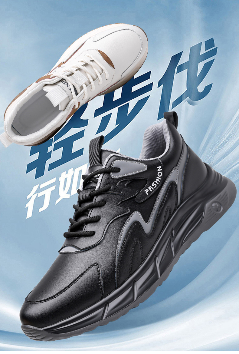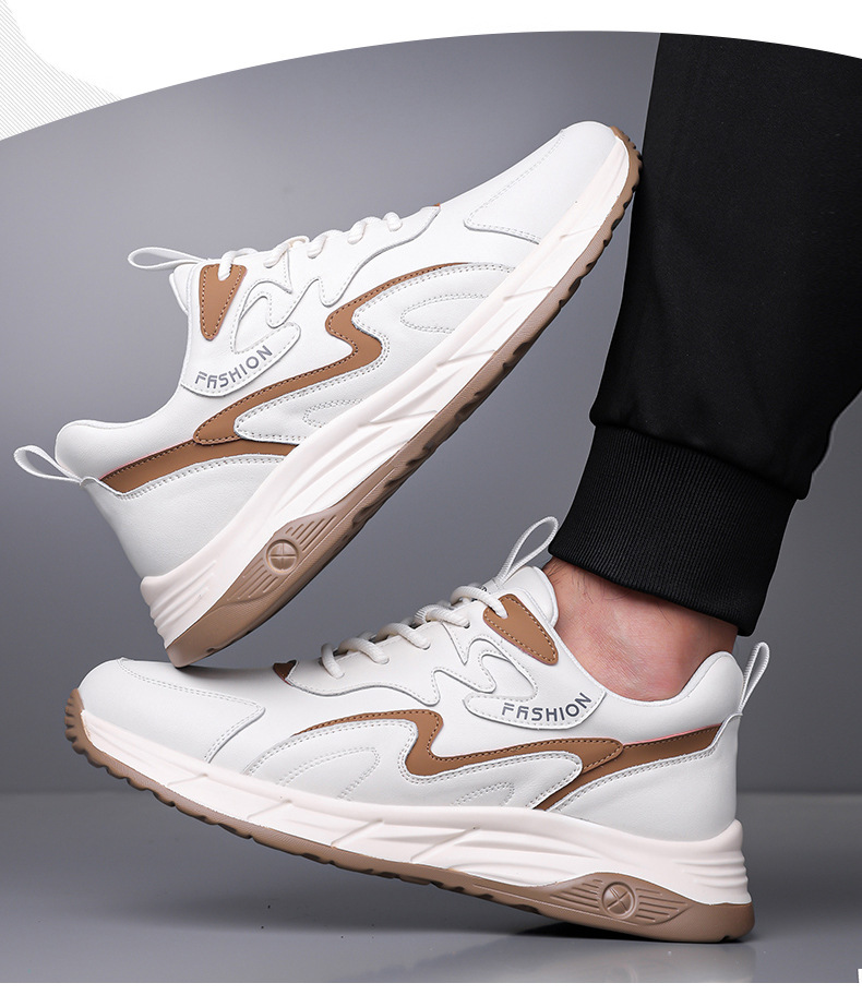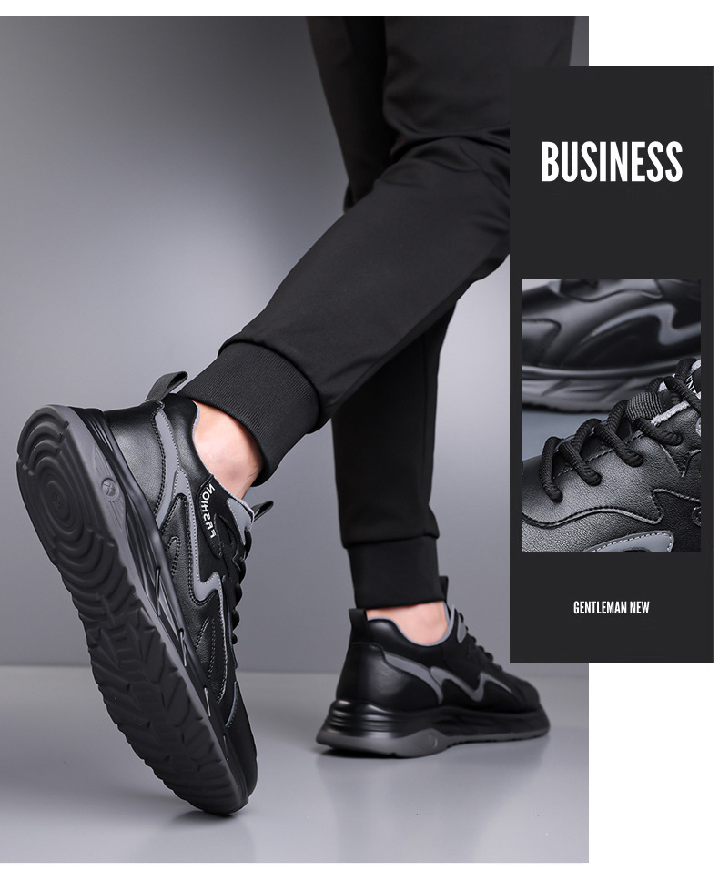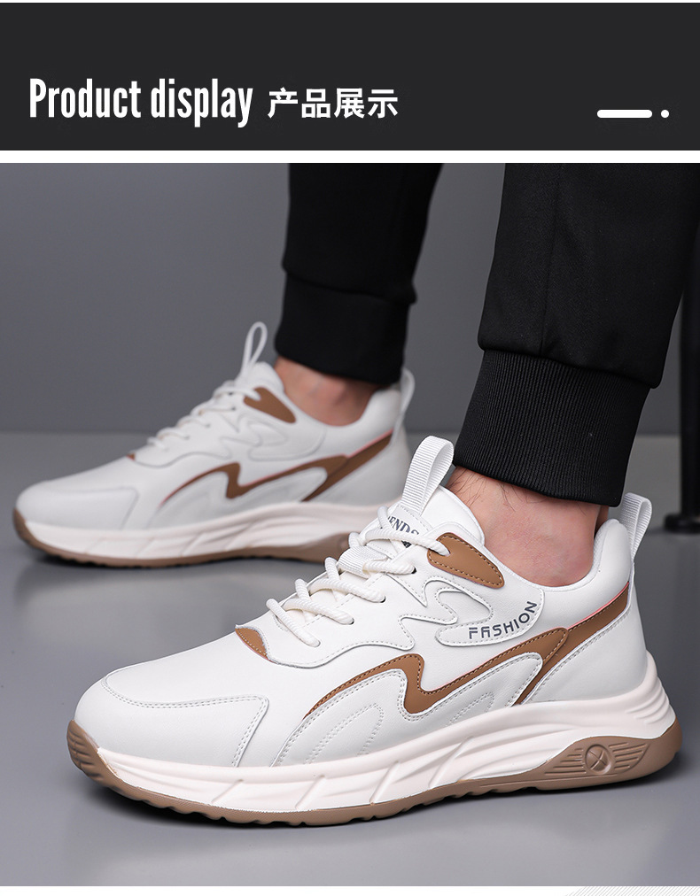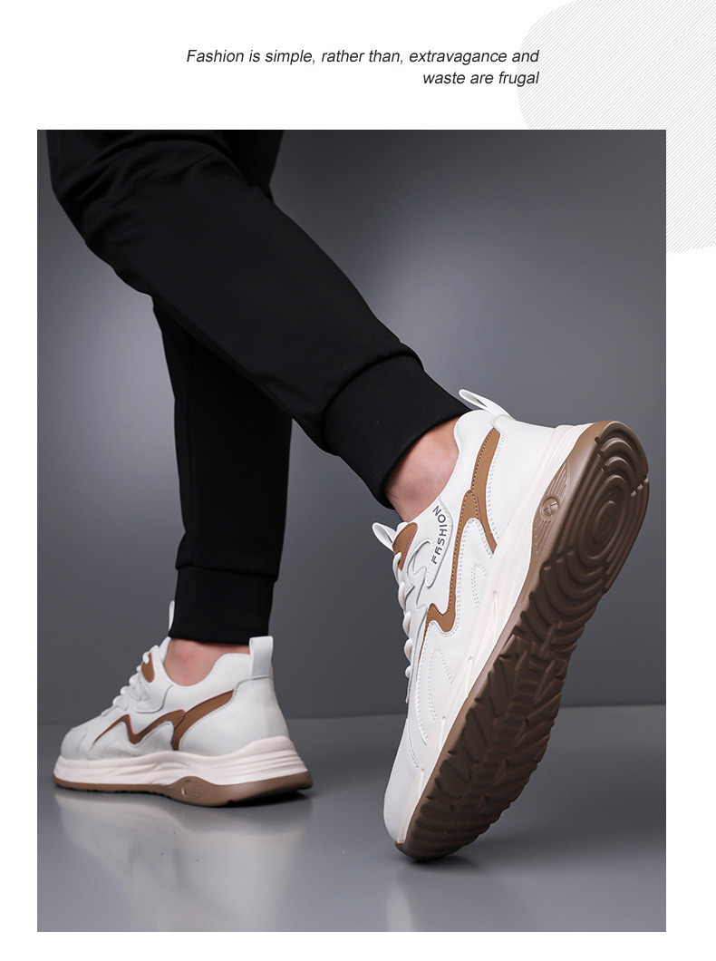 남성용 운동화 2025 가을 겨울 새로운 통기성 부드러운 밑창 운동화 트렌디한 가죽 남성 신발 캐주얼 두꺼운 밑창 아빠 신발
