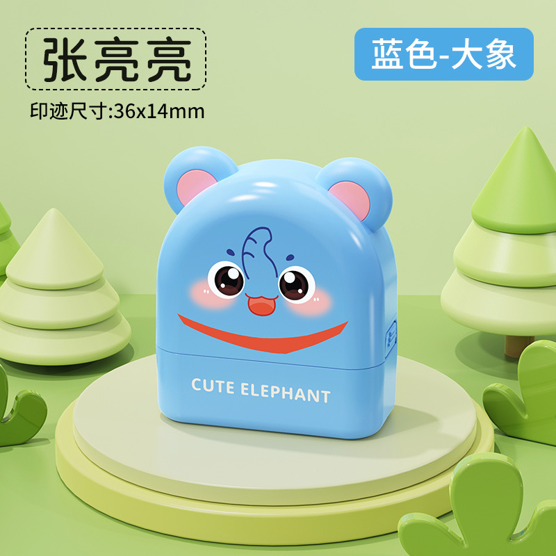 • 어린이 이름 스탬프(귀여운 애완동물 귀 스타일)-블루-코끼리