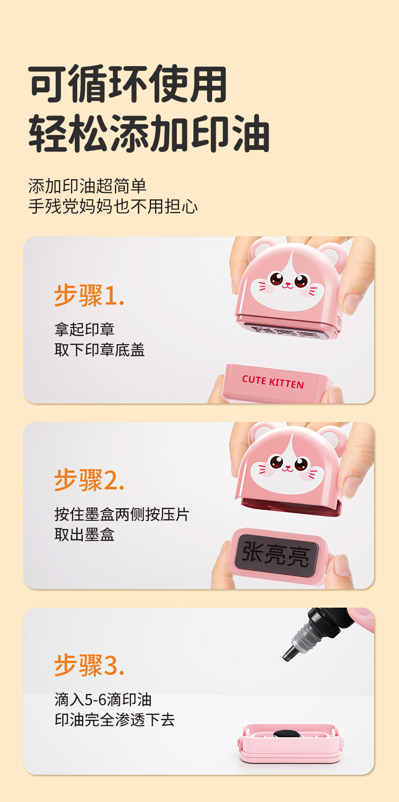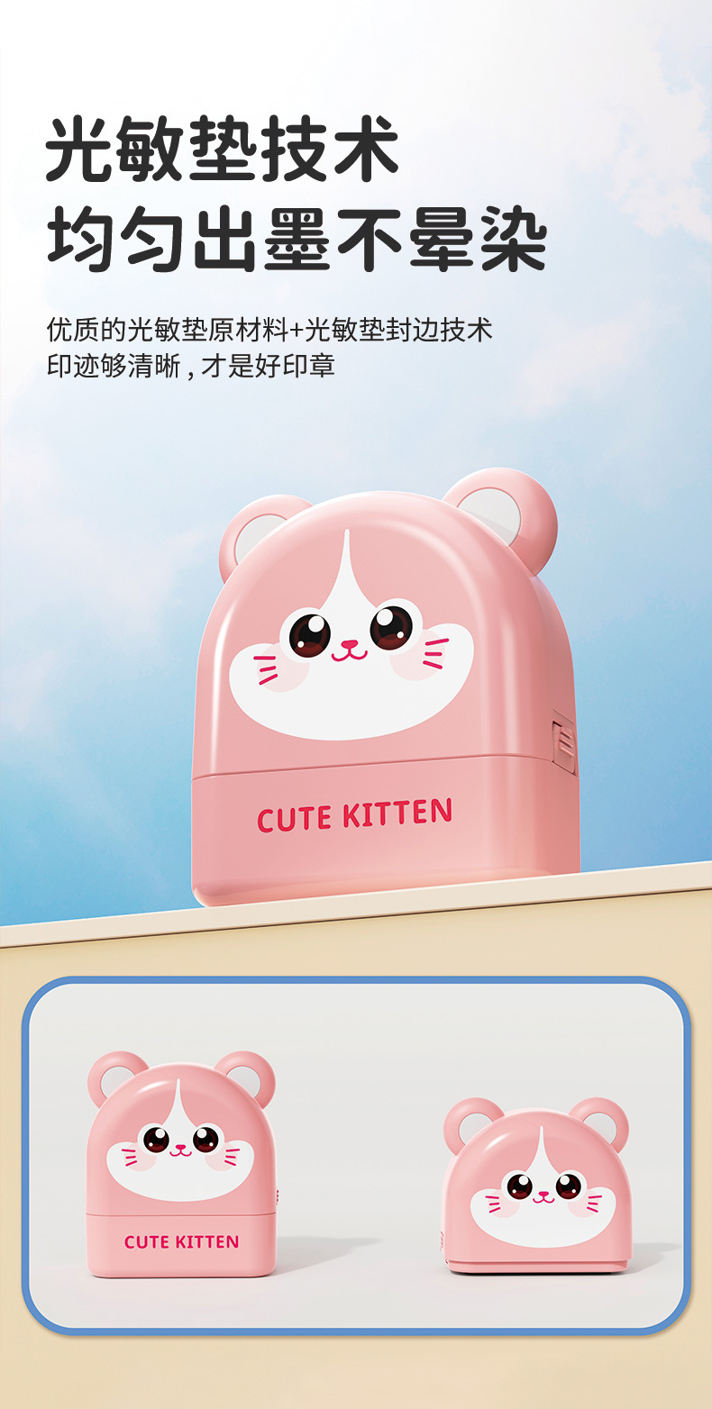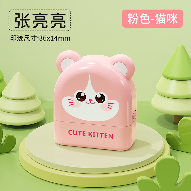 • 어린이 이름 스탬프(귀여운 애완동물 귀 스타일)-핑크-고양이