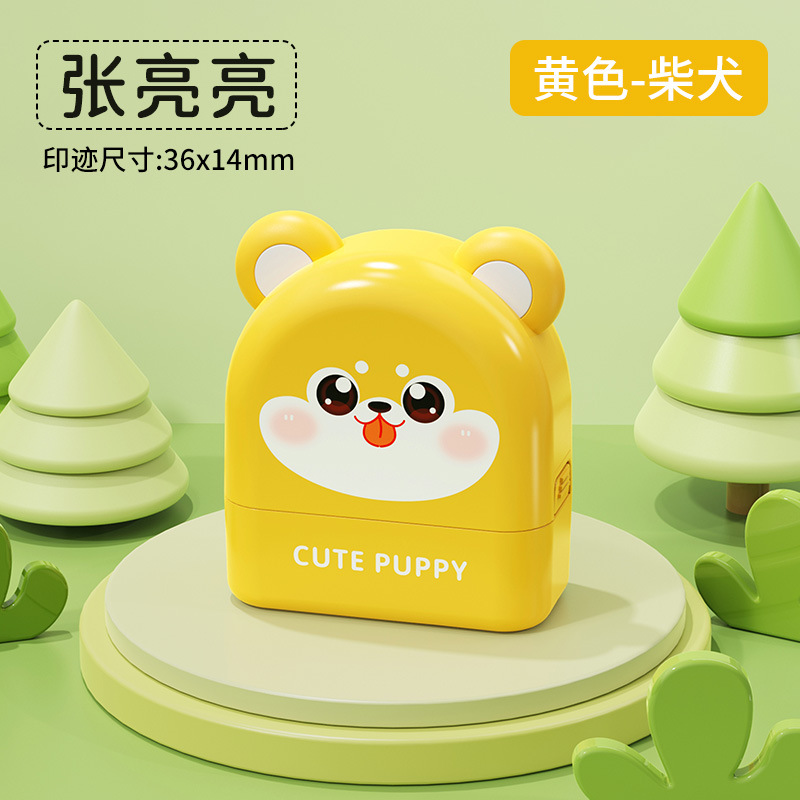 • 어린이 이름 스탬프(귀여운 애완동물 귀형)-노란색-시바견