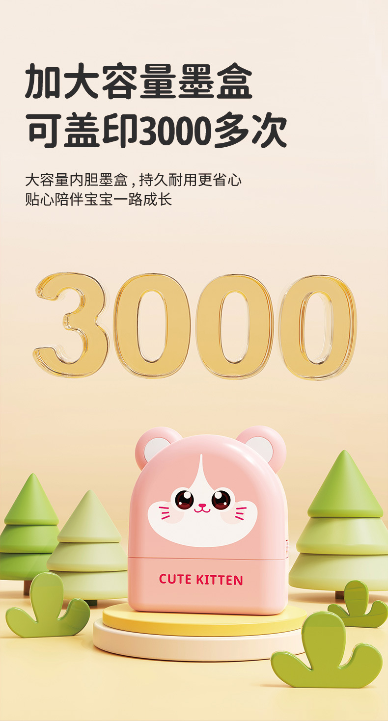 • 양방향 어린이 스탬프 - 핑크 딸기 고양이