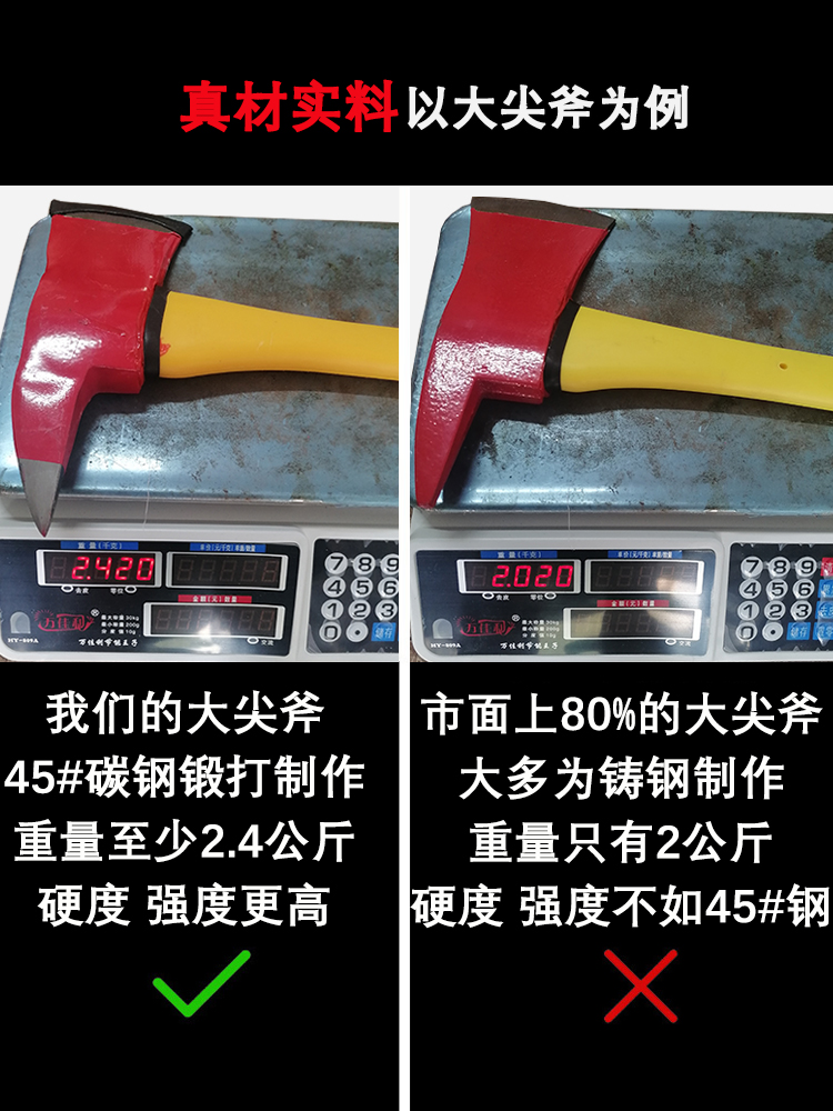 • 【美式大尖斧】45#碳钢\纤维手柄\粗开刃 4.8-5斤