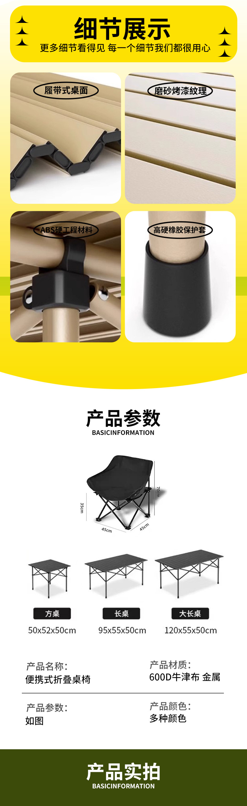 야외용 문체어 세트 가정용 피크닉 차량용 테이블 휴대용 접이식 테이블과 의자 캠핑 용품 에그롤 테이블