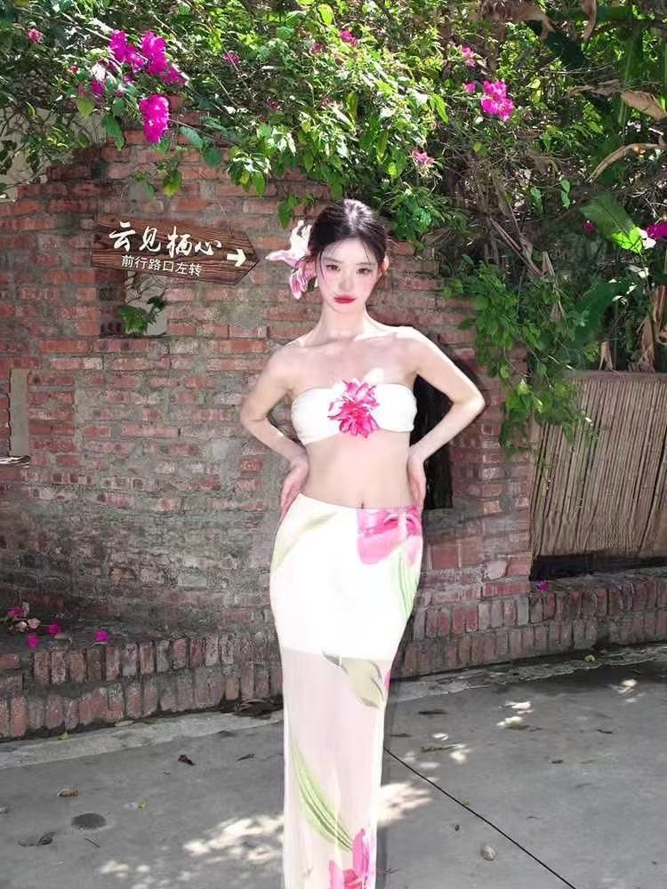 순수한 욕망 꽃 튜브 탑 비키니 여성 여름 섹시한 뜨거운 소녀 산야 해변 휴가 수영복 약속 9187