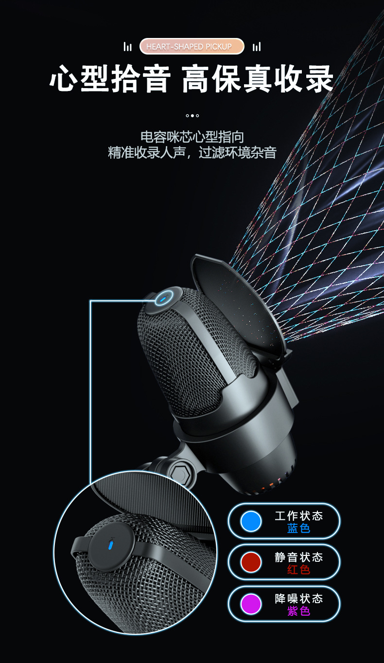 게임 RGB e-스포츠 콘덴서 마이크 USB 콘덴서 마이크 화상 회의 녹화 라이브 녹음 노래 M9스토어 가기