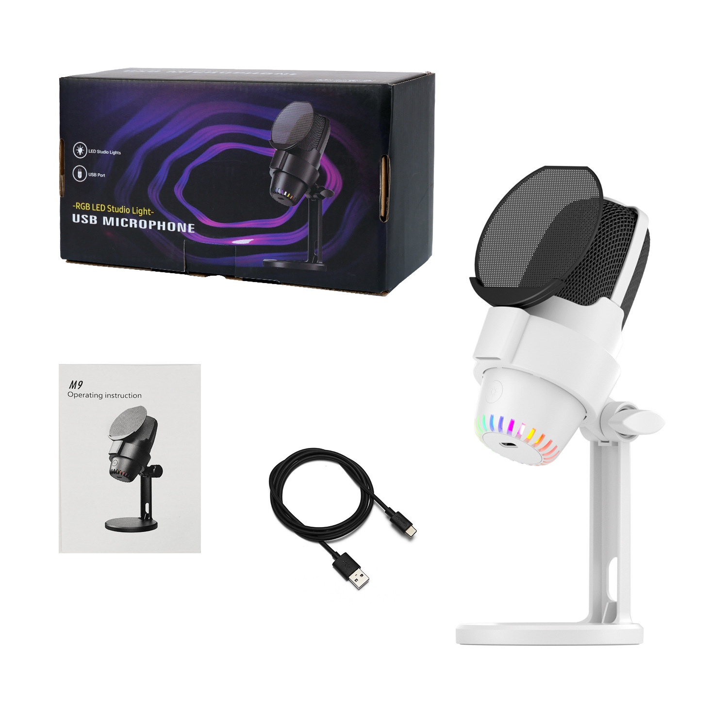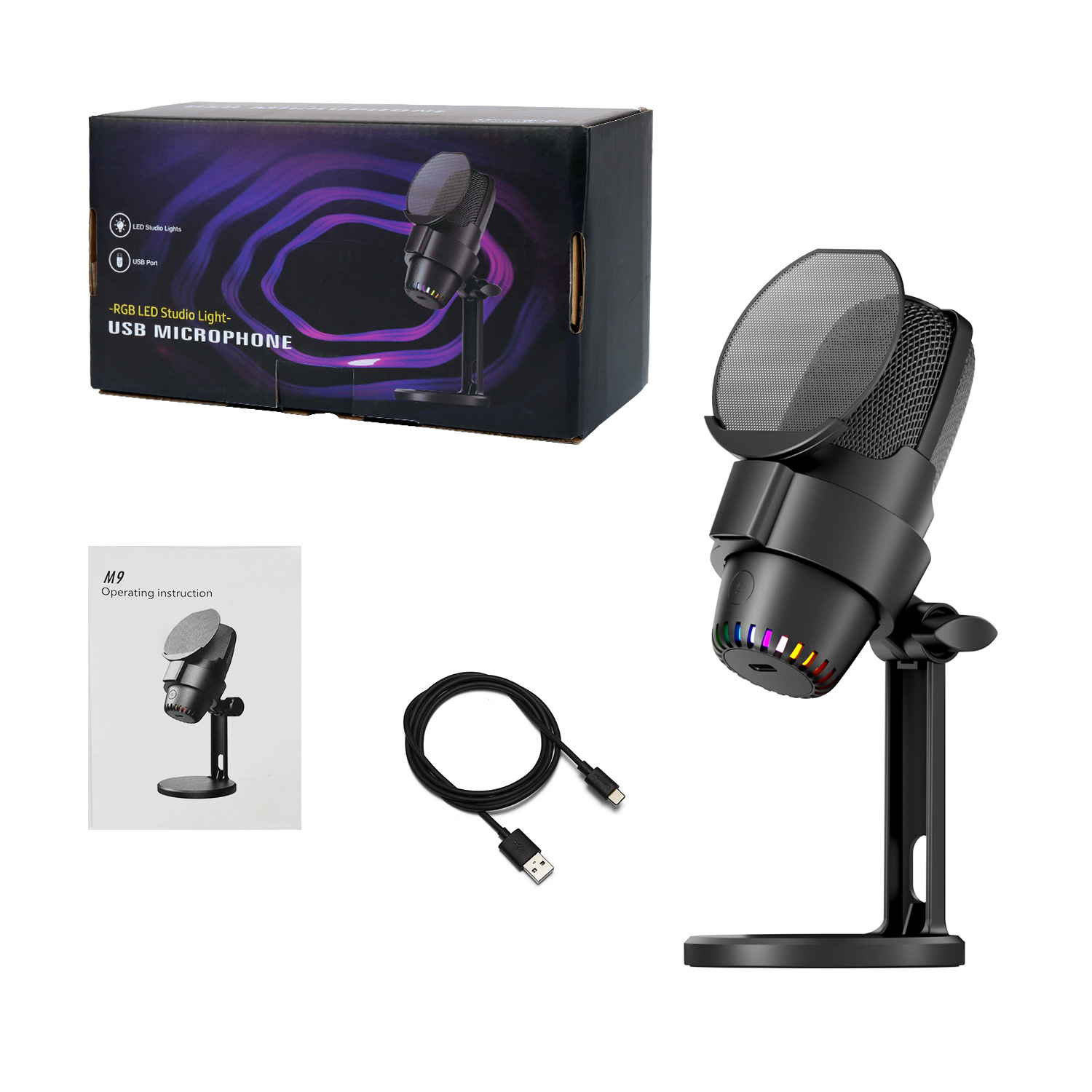 게임 RGB e-스포츠 콘덴서 마이크 USB 콘덴서 마이크 화상 회의 녹화 라이브 녹음 노래 M9