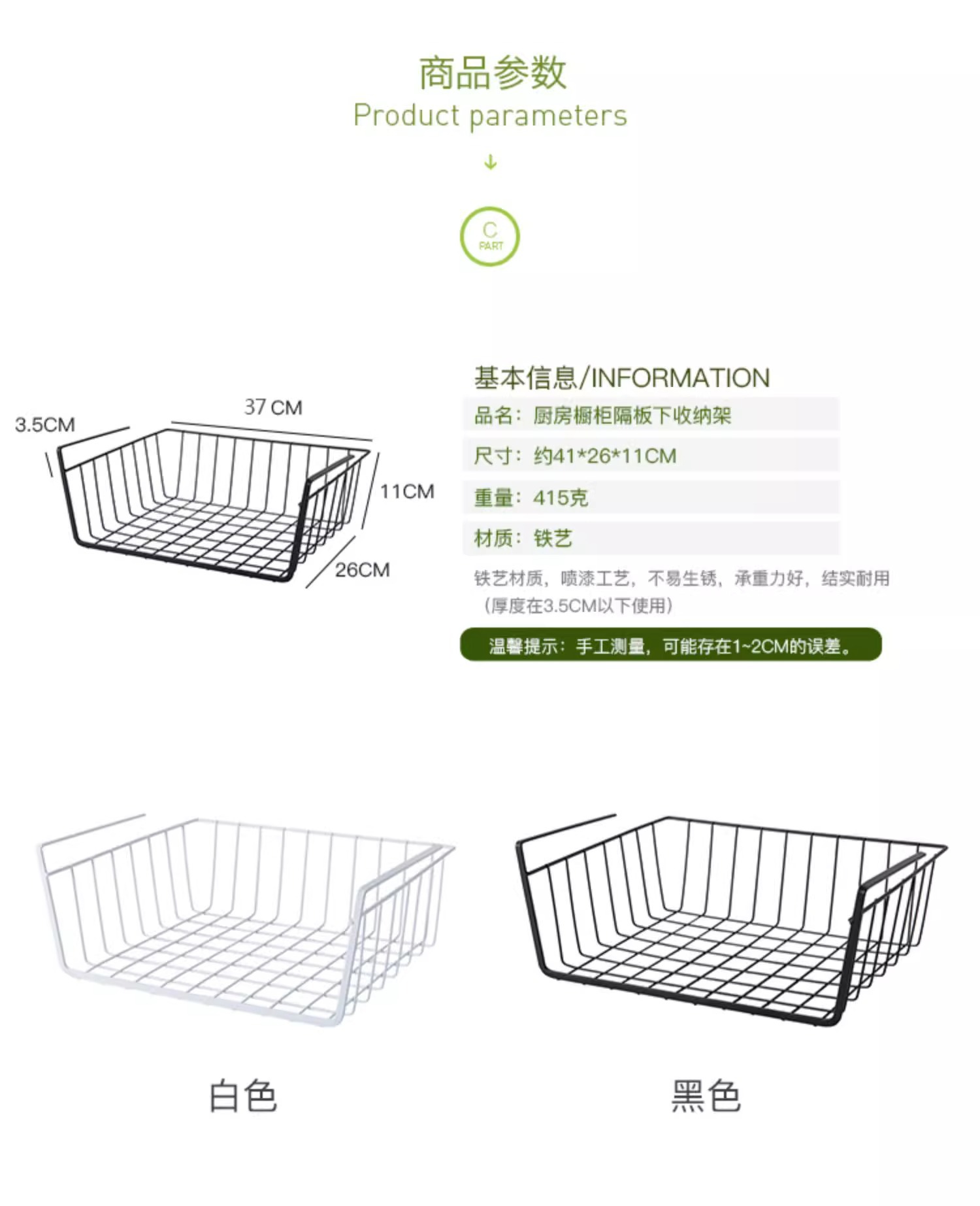 주방 캐비닛 칸막이 아래 걸이 바구니 옷장 수납 선반 수납 선반 기숙사 책상 걸이 정리 선반 수납 선반