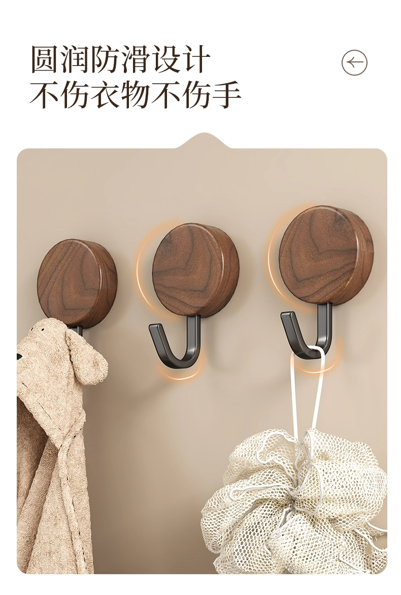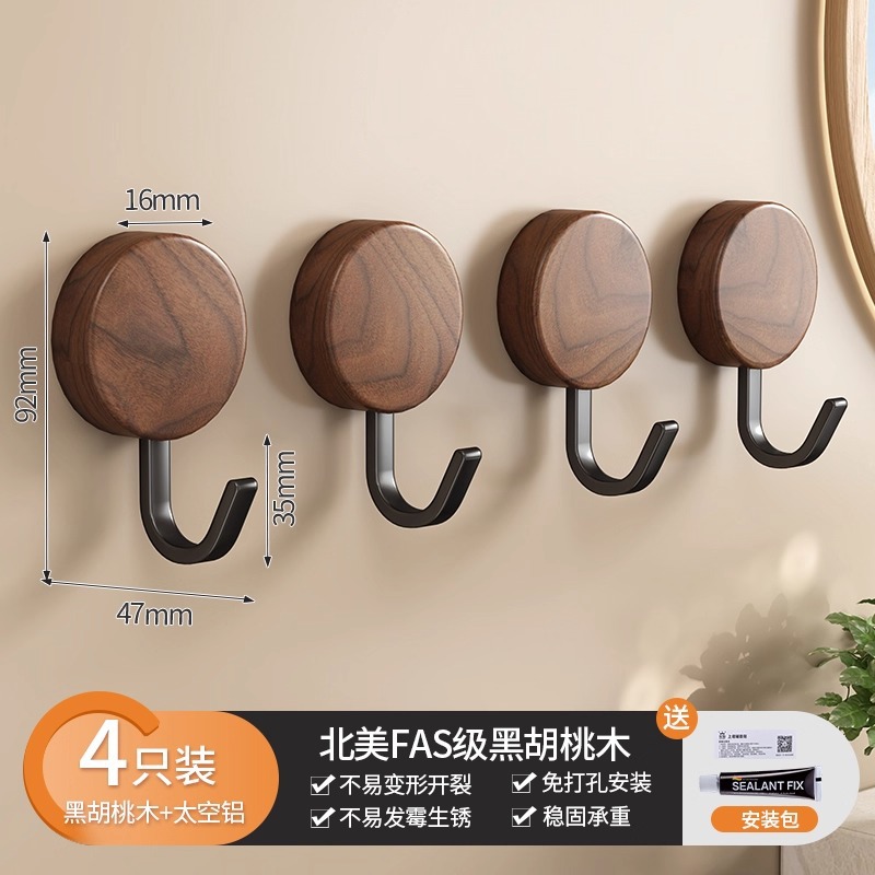 중세 스타일 욕실 후크, 강력한 접착제, 펀치 없는 호두나무 현관문 뒤에 열쇠와 옷 걸이