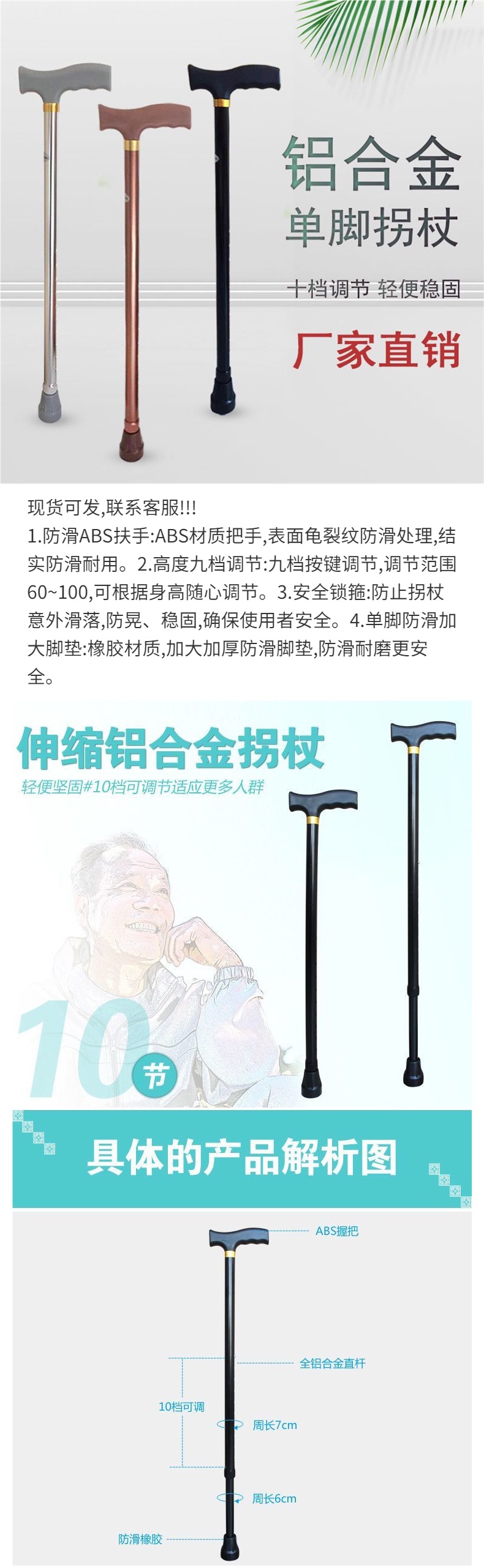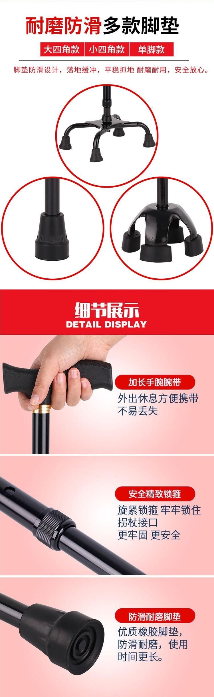 두꺼운 알루미늄 합금 미끄럼 방지 텔레스코픽 단일 발 지팡이, 노인 보행 보조 장치, 등산 스틱, 노인을 위한 경량 지팡이스토어 가기