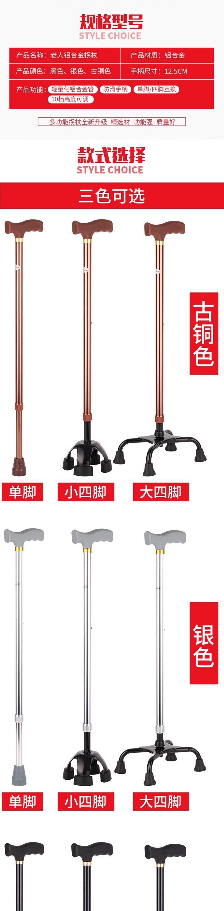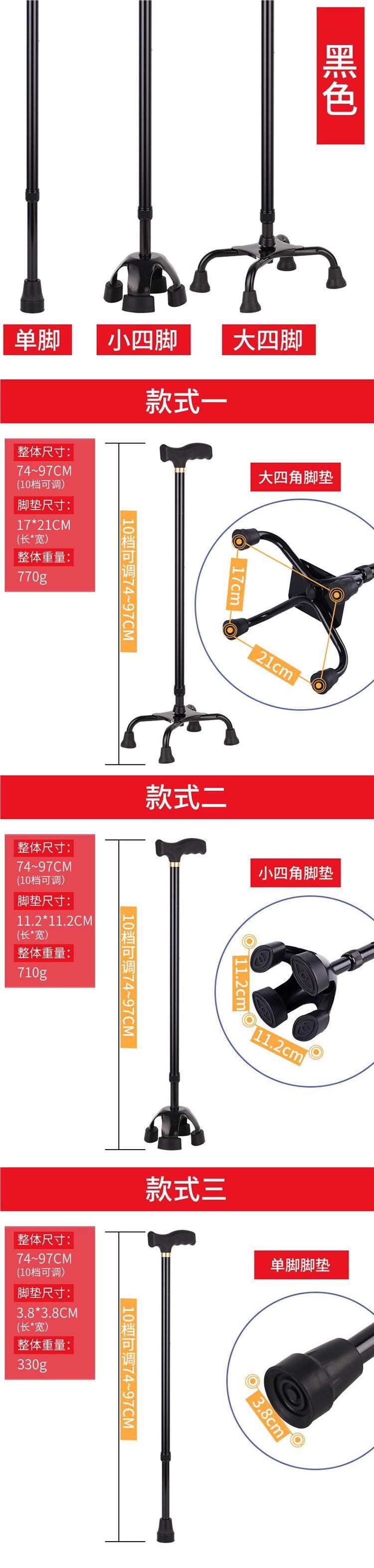 두꺼운 알루미늄 합금 미끄럼 방지 텔레스코픽 단일 발 지팡이, 노인 보행 보조 장치, 등산 스틱, 노인을 위한 경량 지팡이