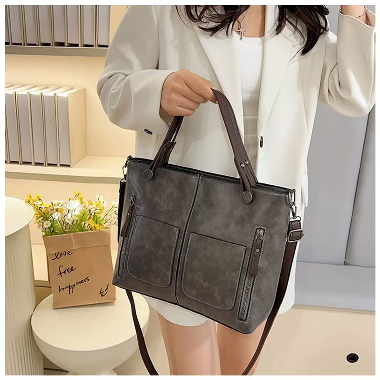 더블 포켓 대용량 2025 인기있는 새로운 유럽과 미국의 패션 숄더백 복고풍 여성 토트 백 간단한 크로스 바디 백