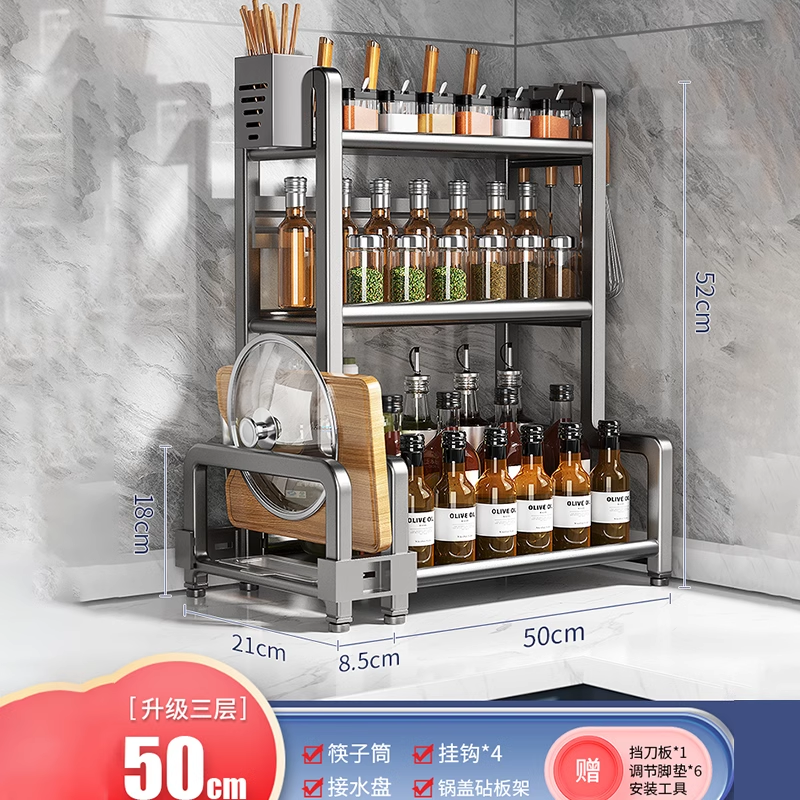 주방 다기능 조미료 보관 랙 가정용 조리대 조미료 젓가락 튜브 칼 오일 소금 소스 식초 보관 랙