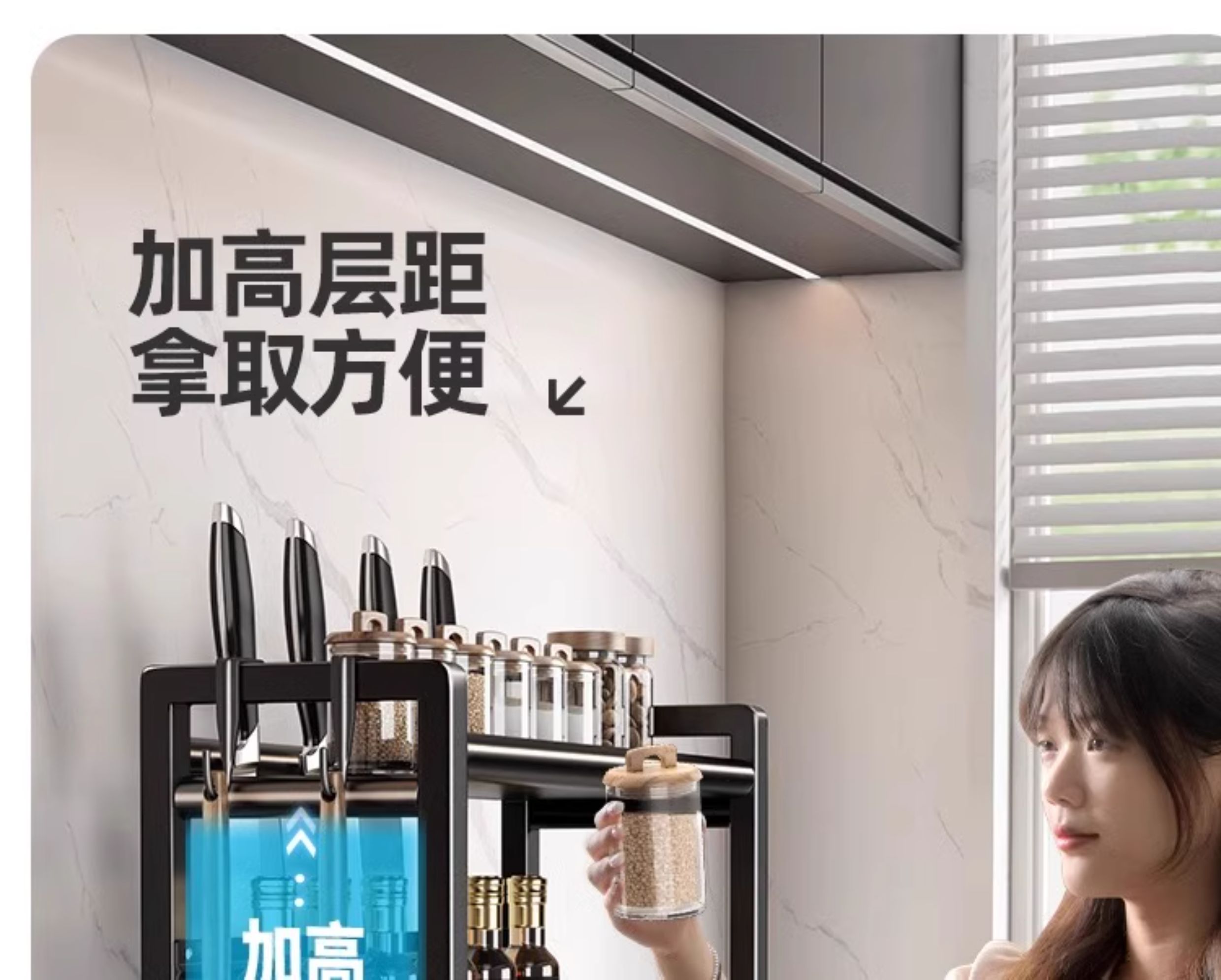 • [블레이드 가드가 있는 굵은 검정색 2층 30] 양념통 + 칼 홀더 + 후크 6개, 나사 없는 설치