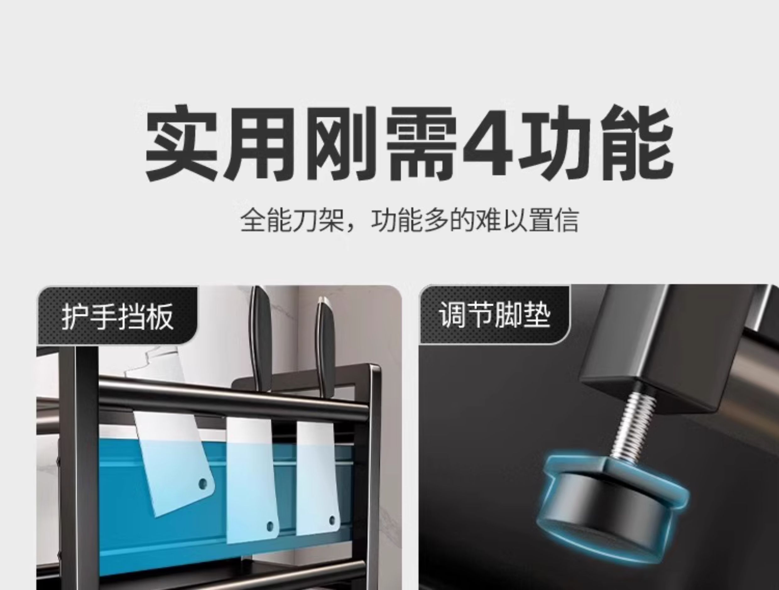 • [두꺼운 건그레이 3단 칼가드 50] 양념걸이 + 칼걸이 + 고리 6개