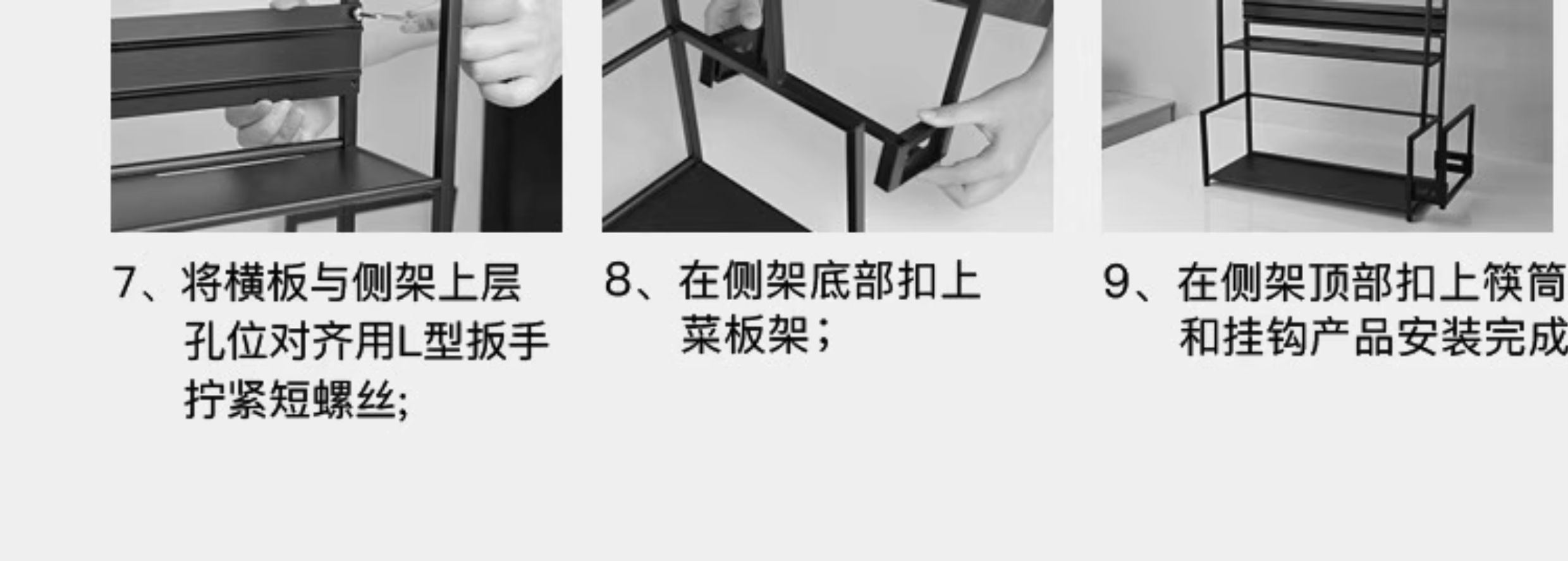 • [볼드건그레이 3단 30 칼가드 포함] 양념걸이 + 칼꽂이 + 젓가락통 + 도마걸이 + 후크 6개, 나사 없는 설치