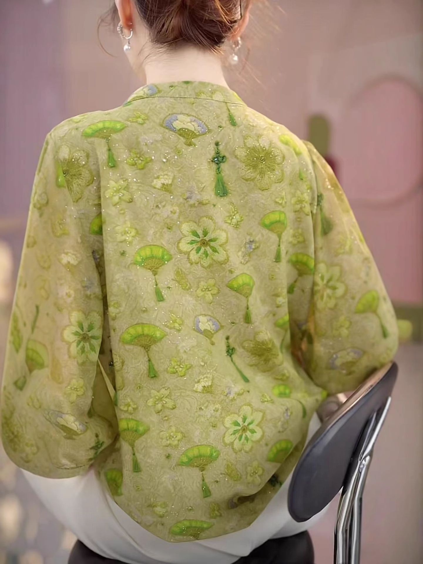 드롭쉬핑 스타일리시한 프린트로 나이를 줄여주는 화이트 쉬폰 셔츠, 여름 7부소매 셔츠, 루즈하고 슬림한 탑