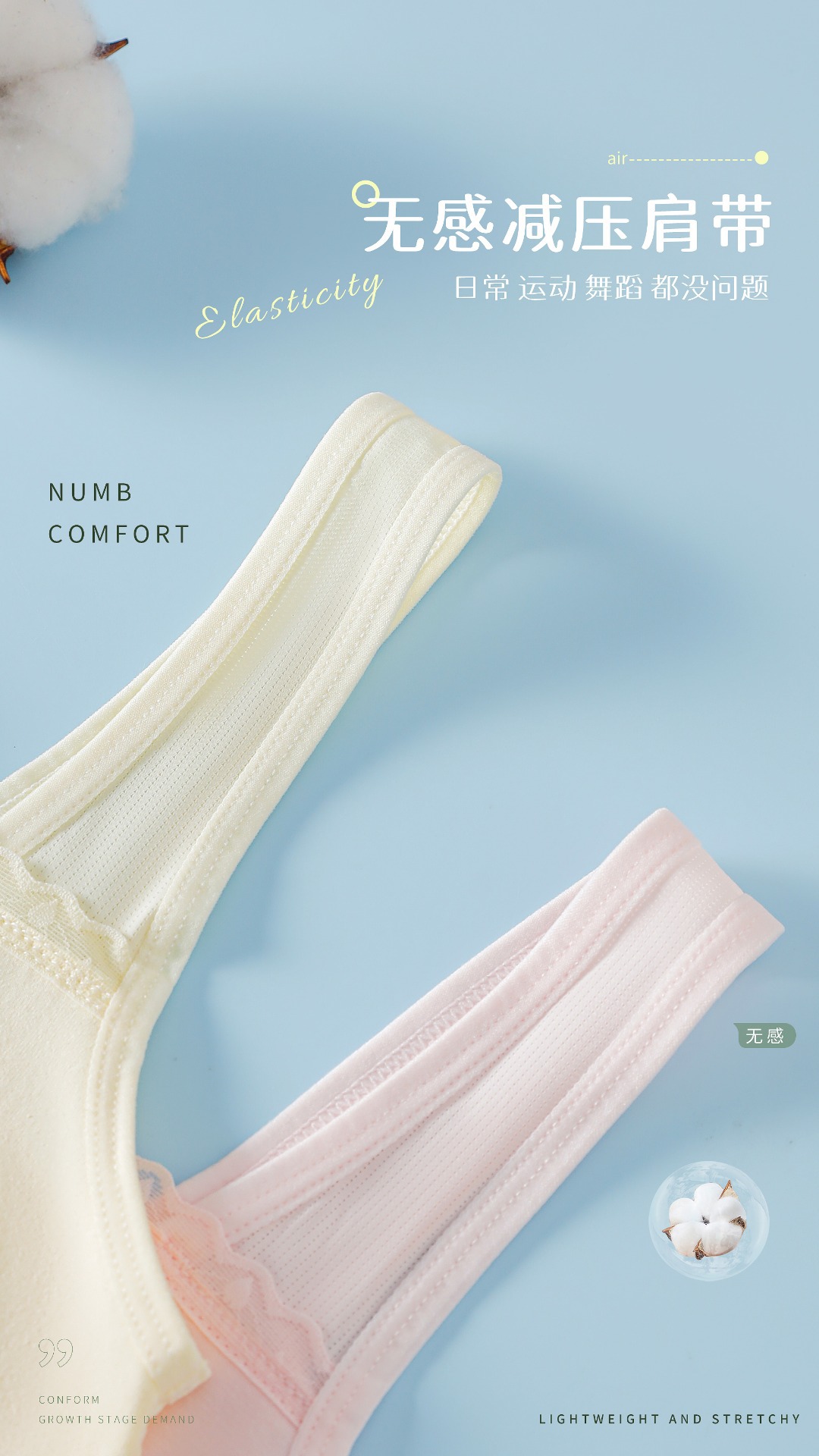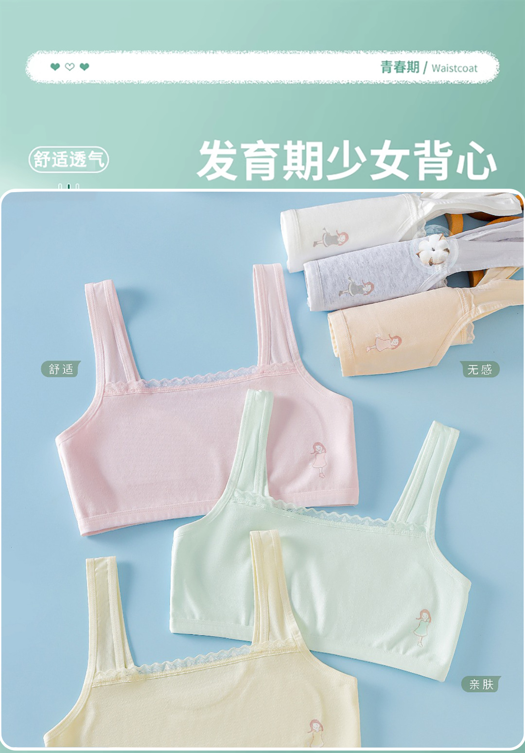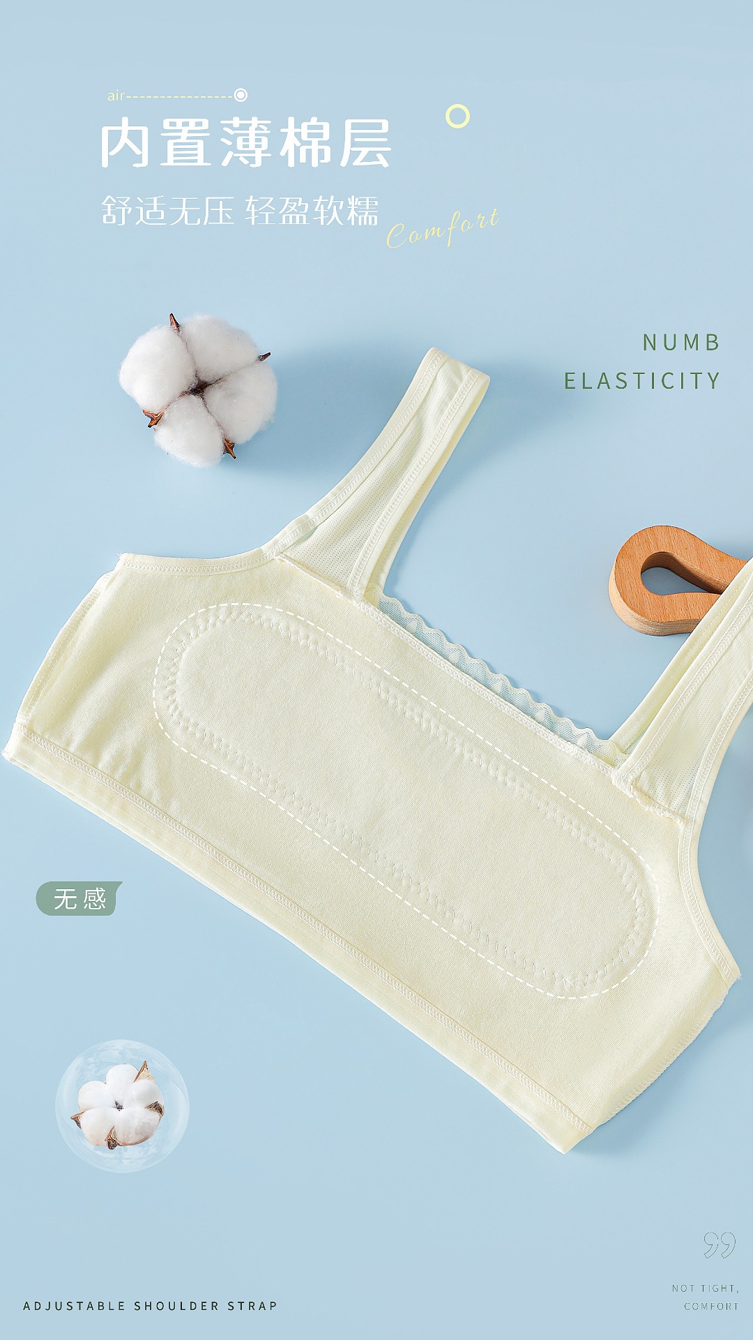 초등학생 및 중학생 여아용 브라, 1단계 부드러운 면 패드, 발달기 여아용 제로 제약 속옷, 고탄력 조끼