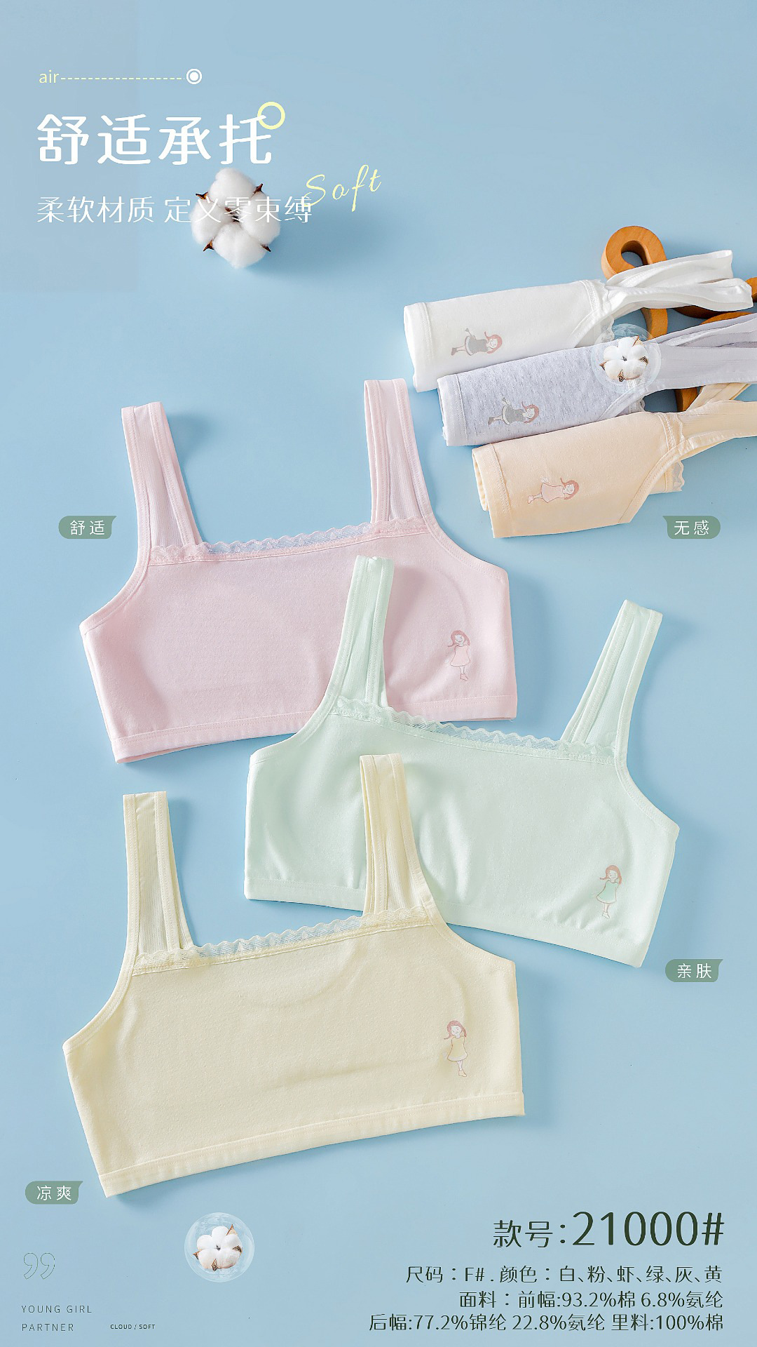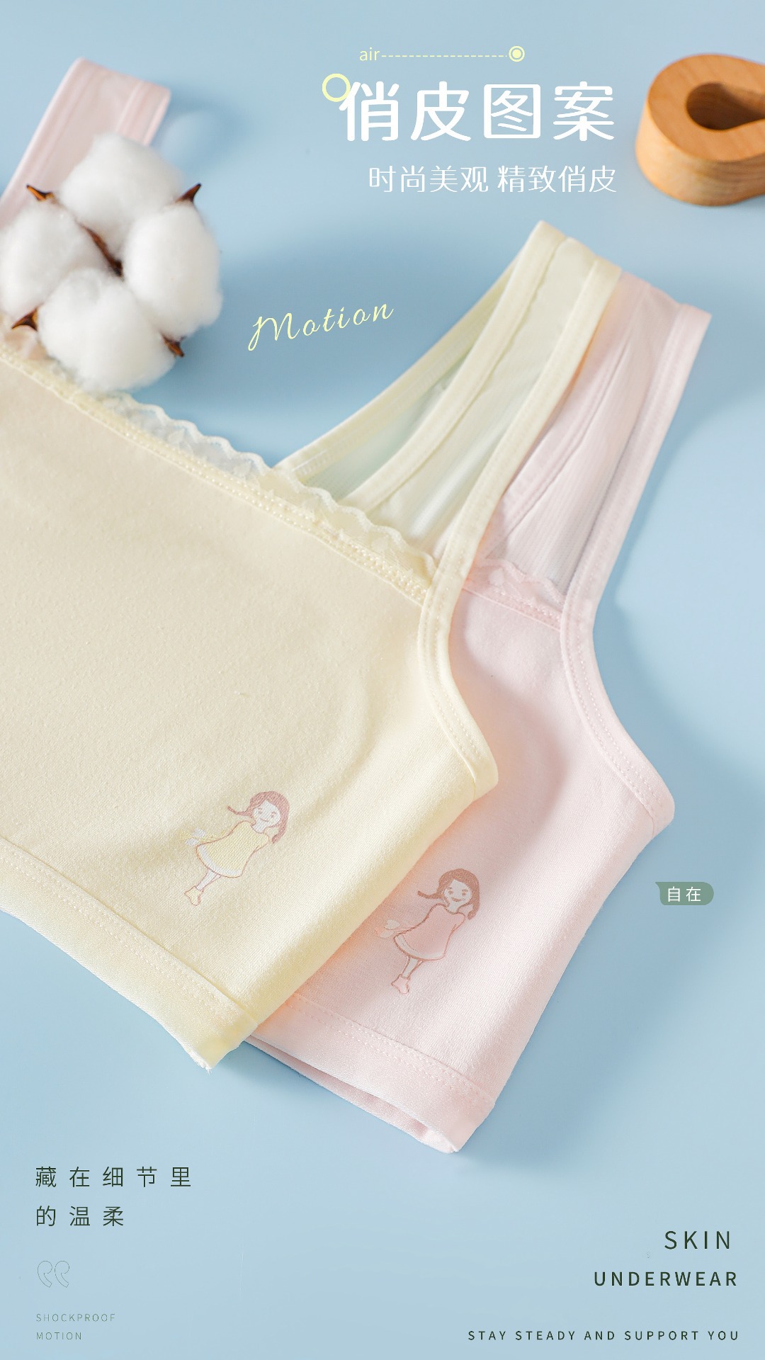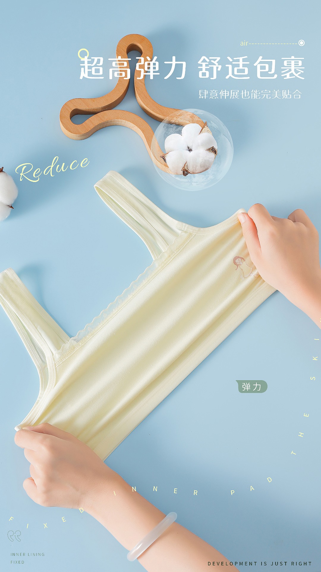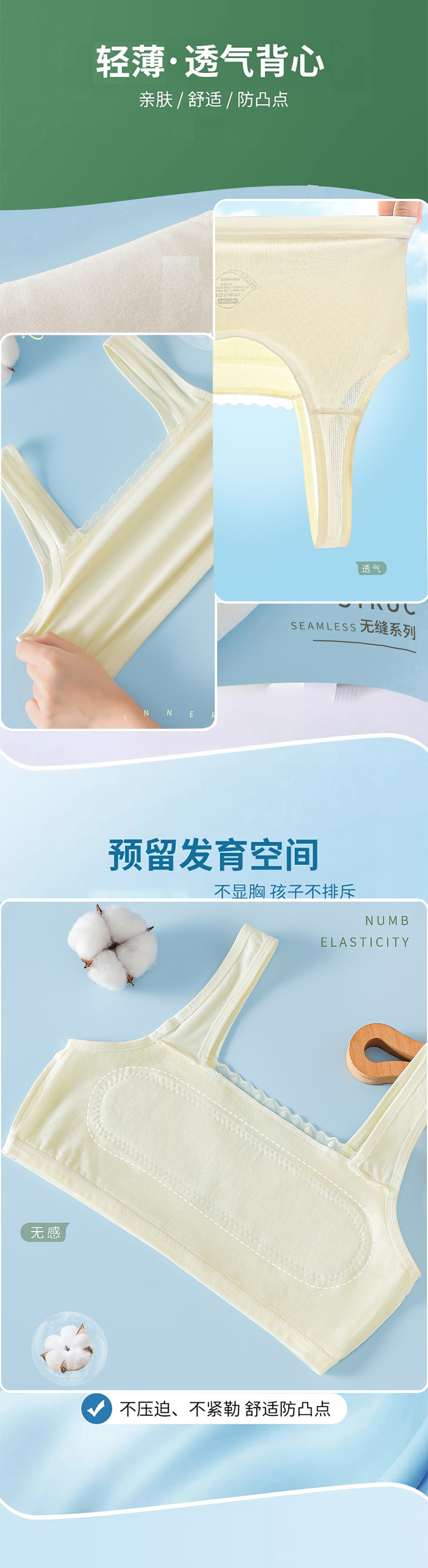 초등학생 및 중학생 여아용 브라, 1단계 부드러운 면 패드, 발달기 여아용 제로 제약 속옷, 고탄력 조끼