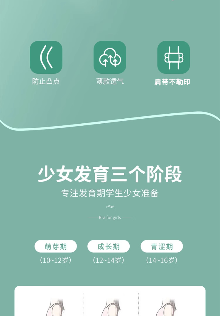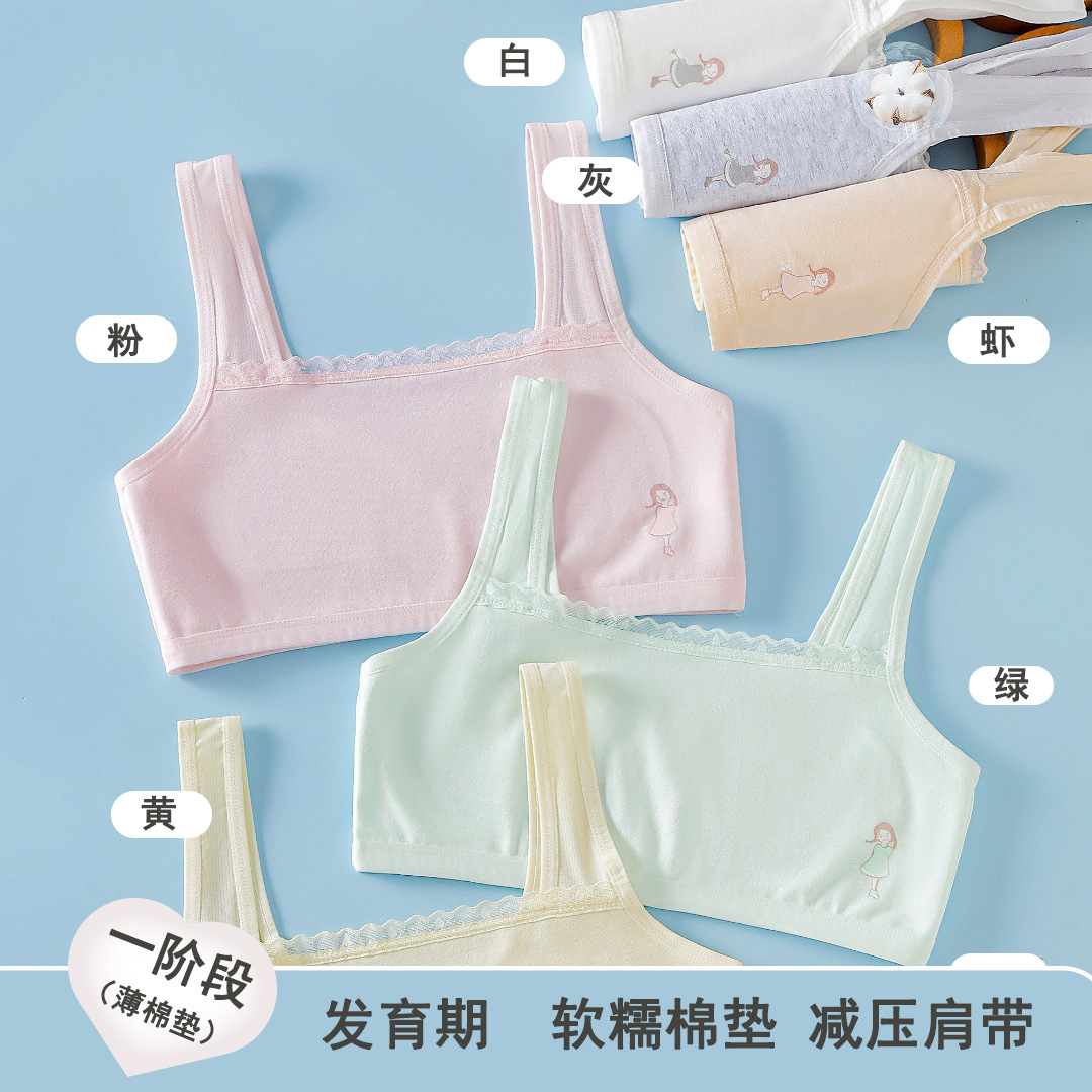 초등학생 및 중학생 여아용 브라, 1단계 부드러운 면 패드, 발달기 여아용 제로 제약 속옷, 고탄력 조끼스토어 가기