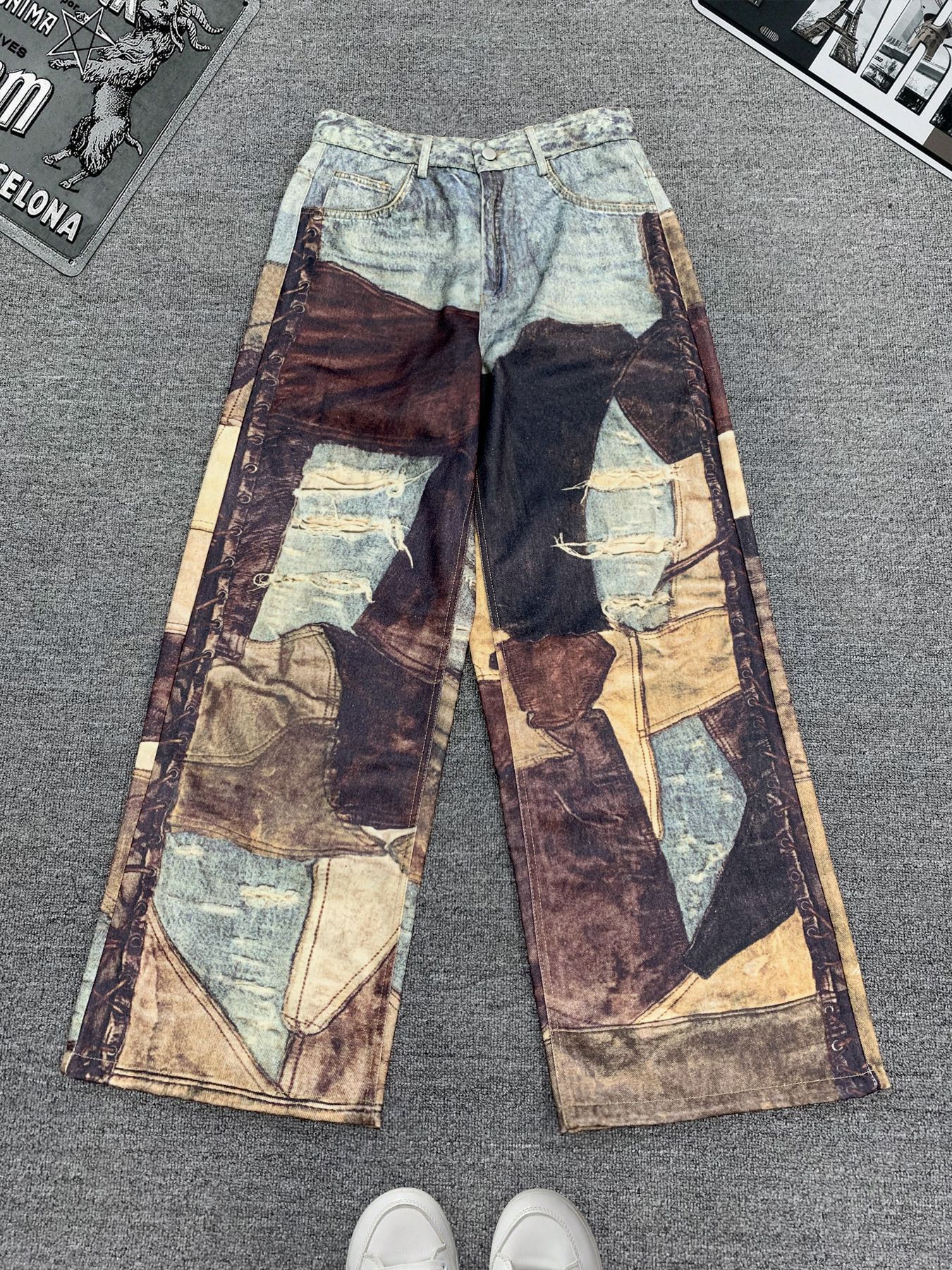 제조 업체 도매 유럽과 미국의 국경 간 남성 패션 브랜드 청바지 스플 라이스 스타일 프린트 아메리칸 캐주얼 남성 청바지 2811