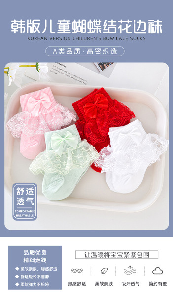 나비 매듭 어린이 양말 여름 레이스 중간 튜브 아기 여름과 가을 다목적 공주 얇은 아기 양말스토어 가기