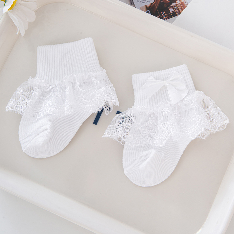 나비 매듭 어린이 양말 여름 레이스 중간 튜브 아기 여름과 가을 다목적 공주 얇은 아기 양말