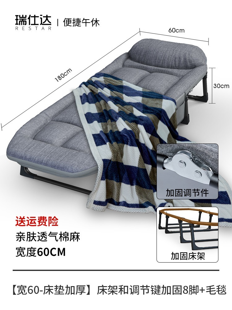Ruishida 점심 시간 접이식 침대 사무실 싱글 안락 의자 유물 간단한 휴대용 병원 동행 캠프 낮잠 침대스토어 가기