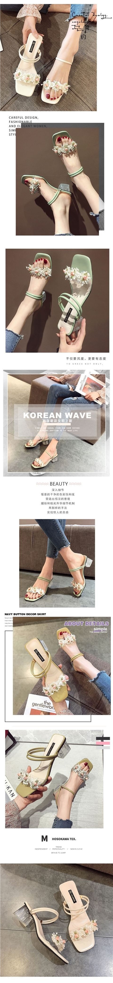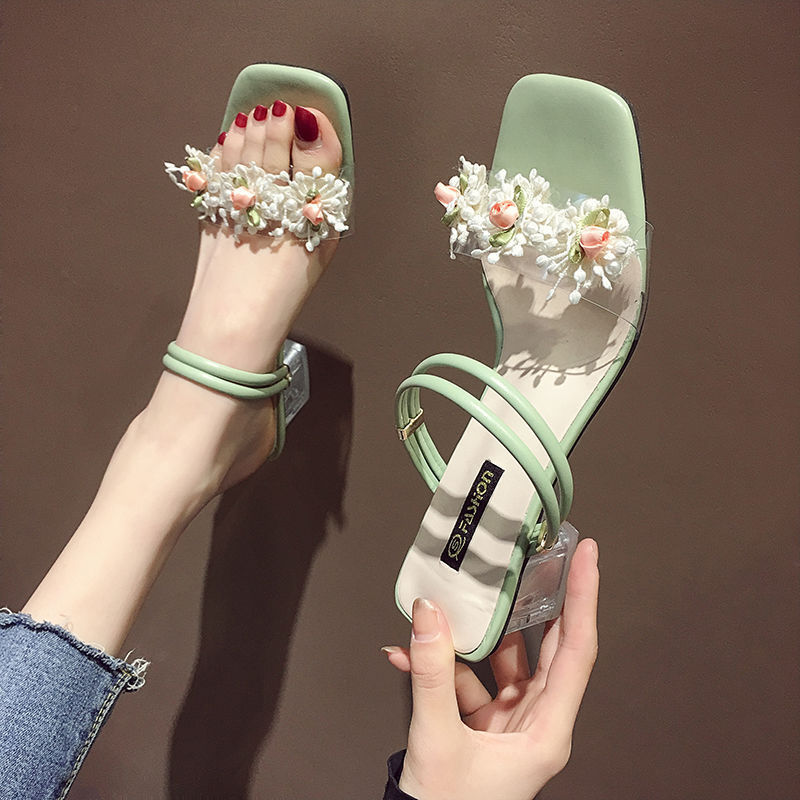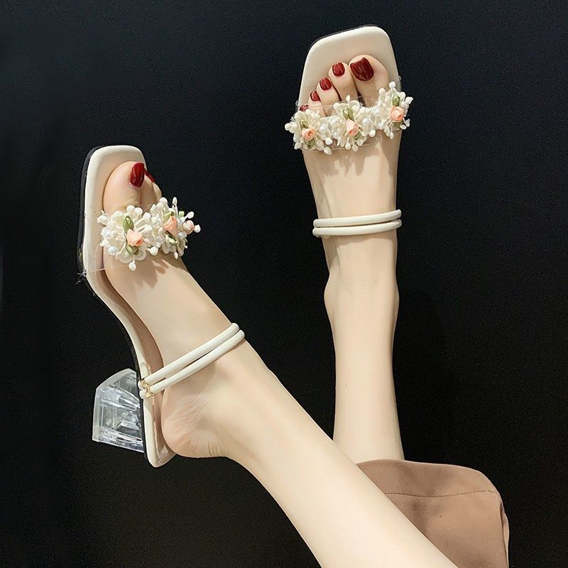 여성을위한 여름 샌들 2025 새로운 요정 스타일 패션 꽃 두꺼운 굽 학생 다목적 인터넷 연예인 원 스트랩 여성 신발스토어 가기
