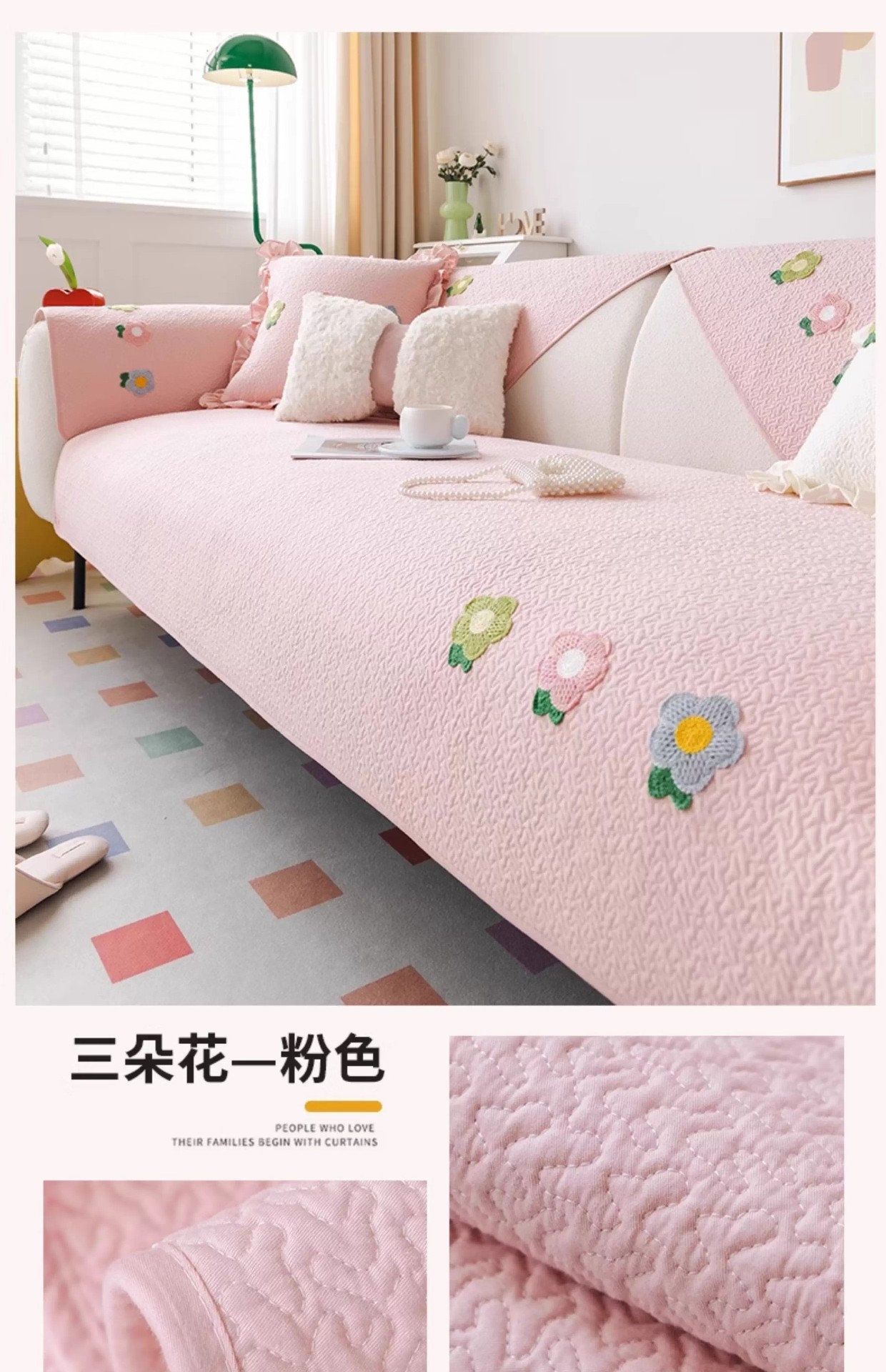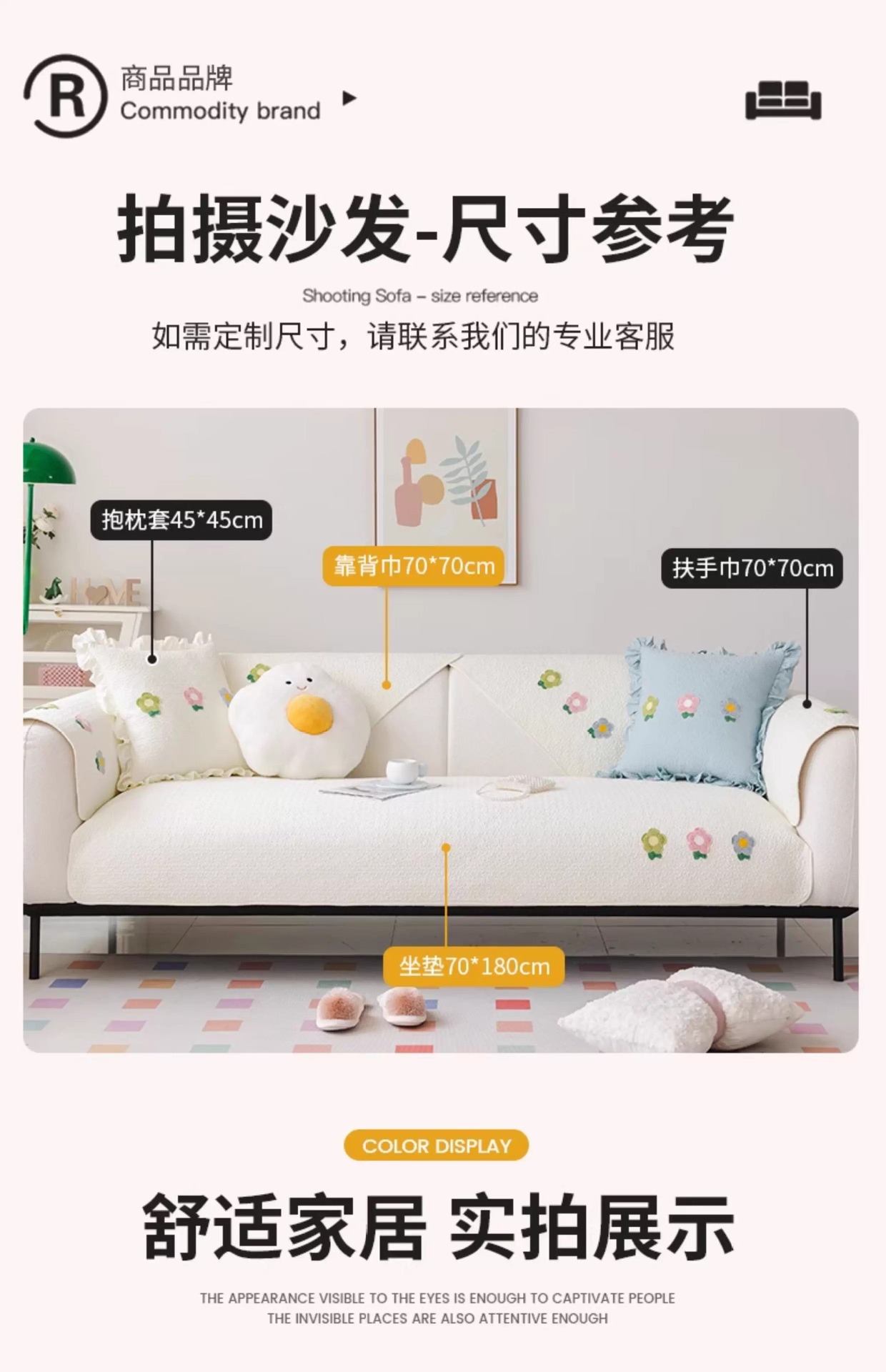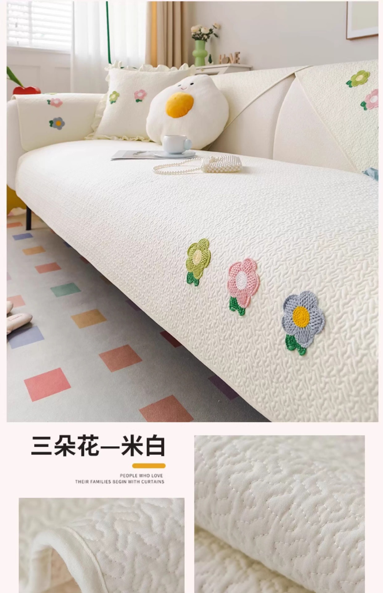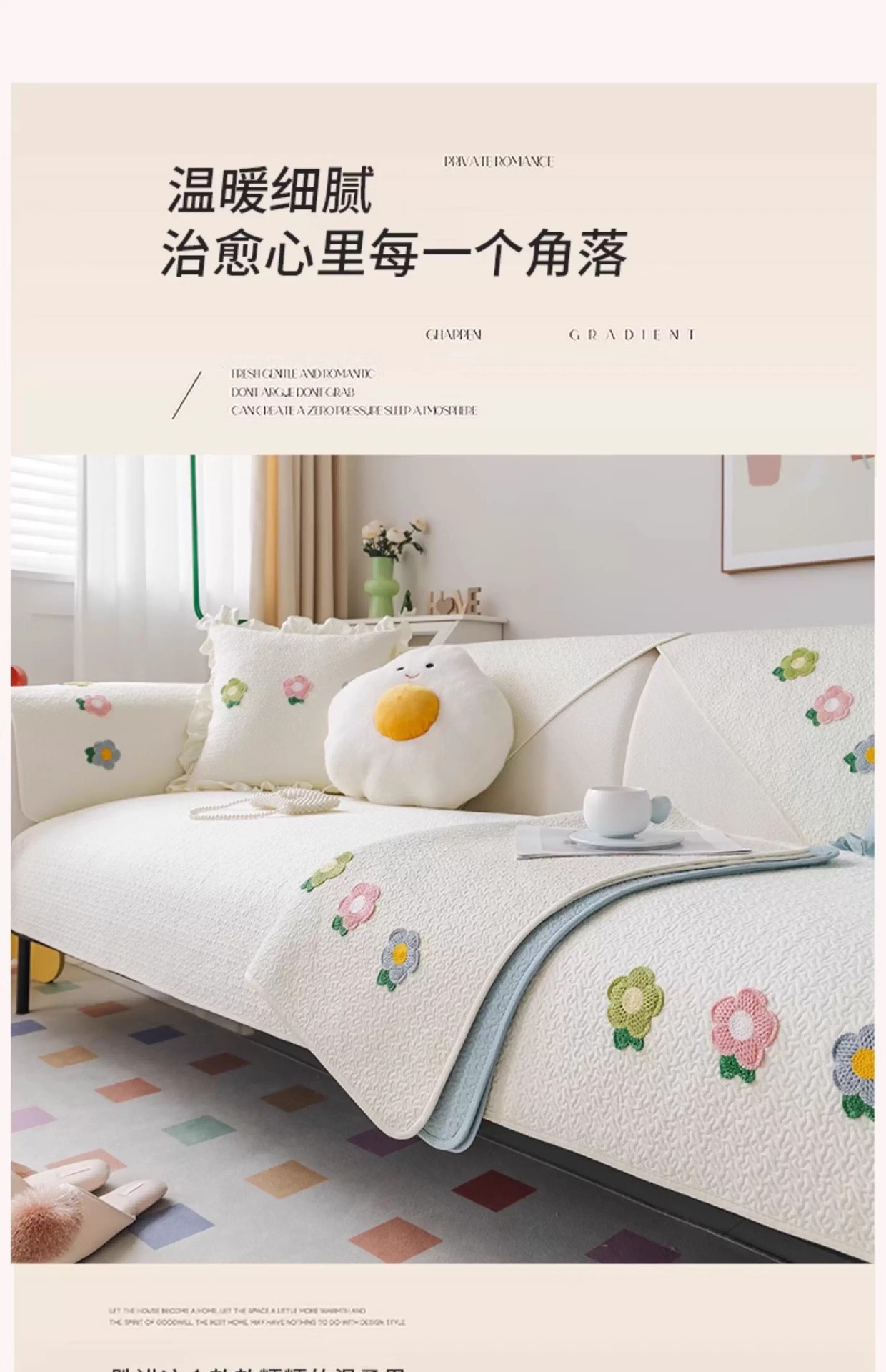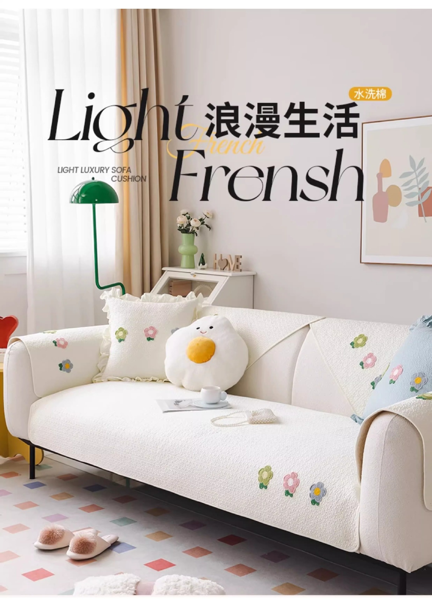 소파 쿠션은 모든 계절에 적합합니다. 2025 새로운 스타일의 워시 코튼 크림 스타일 고정 미끄럼 방지 직선 소파 쿠션