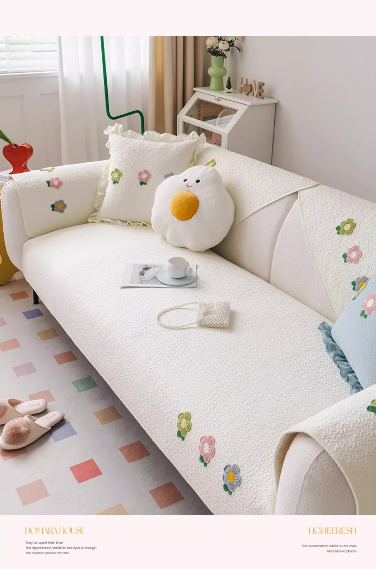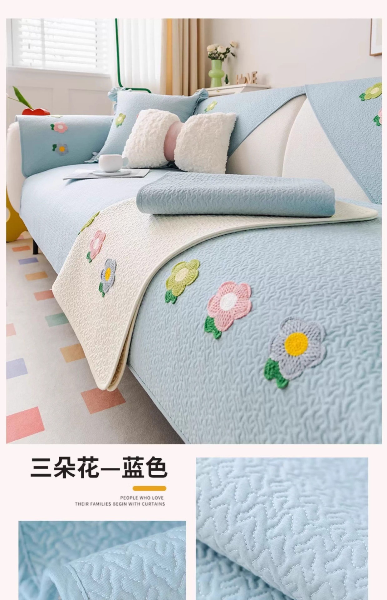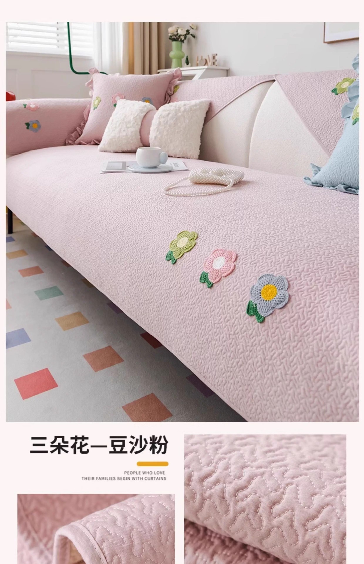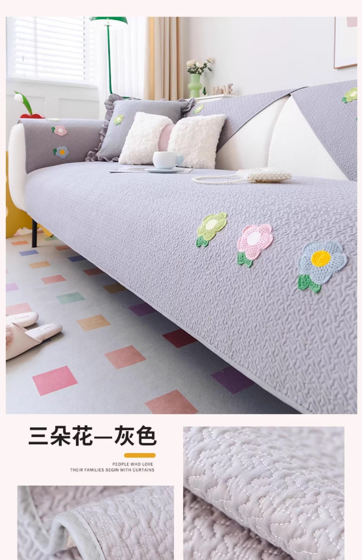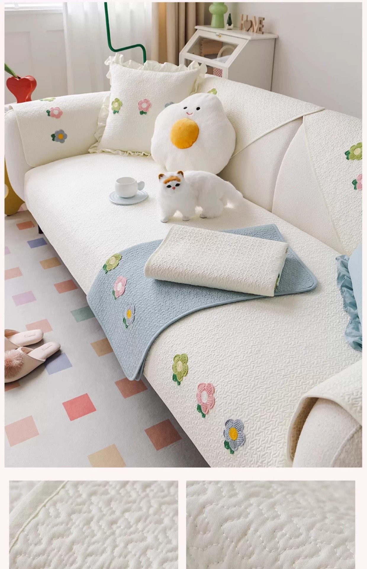 소파 쿠션은 모든 계절에 적합합니다. 2025 새로운 스타일의 워시 코튼 크림 스타일 고정 미끄럼 방지 직선 소파 쿠션