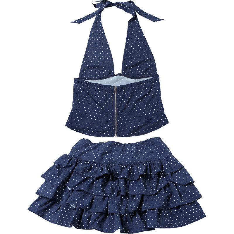 Spot 유럽과 미국의 국경 간 새로운 여성 의류 순수한 욕망 섹시한 폴카 도트 홀터넥 조끼 슬림 피트 힙 케이크 스커트 슈트스토어 가기