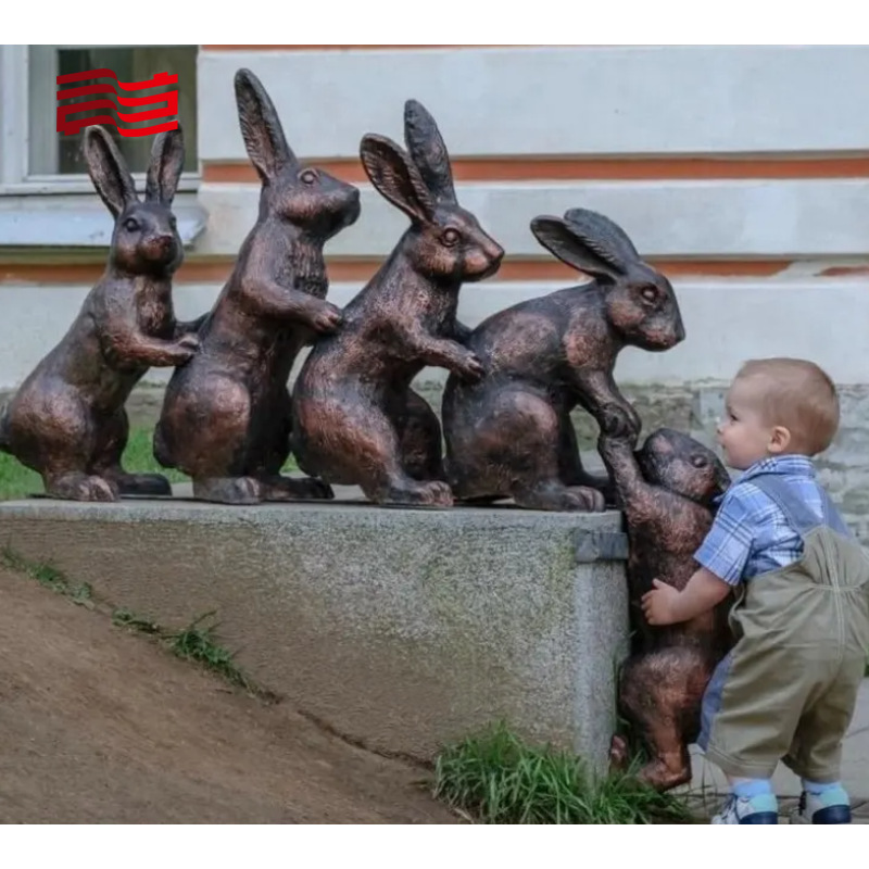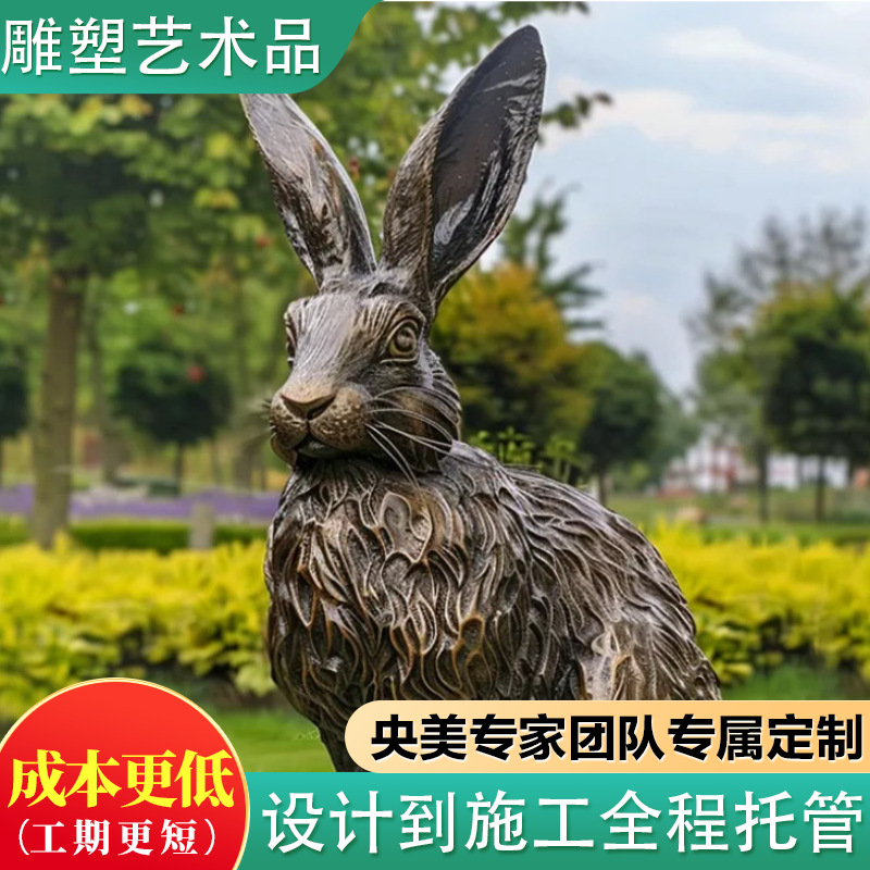 주조 구리 토끼 공예품, 안뜰 정원 바닥 장식, 공원 경관 창작 조각 장식품