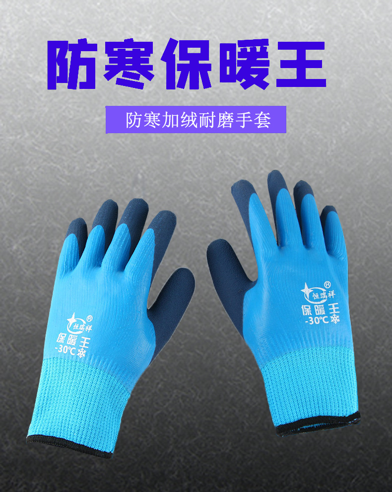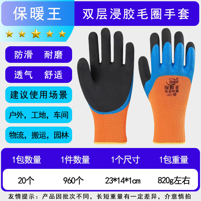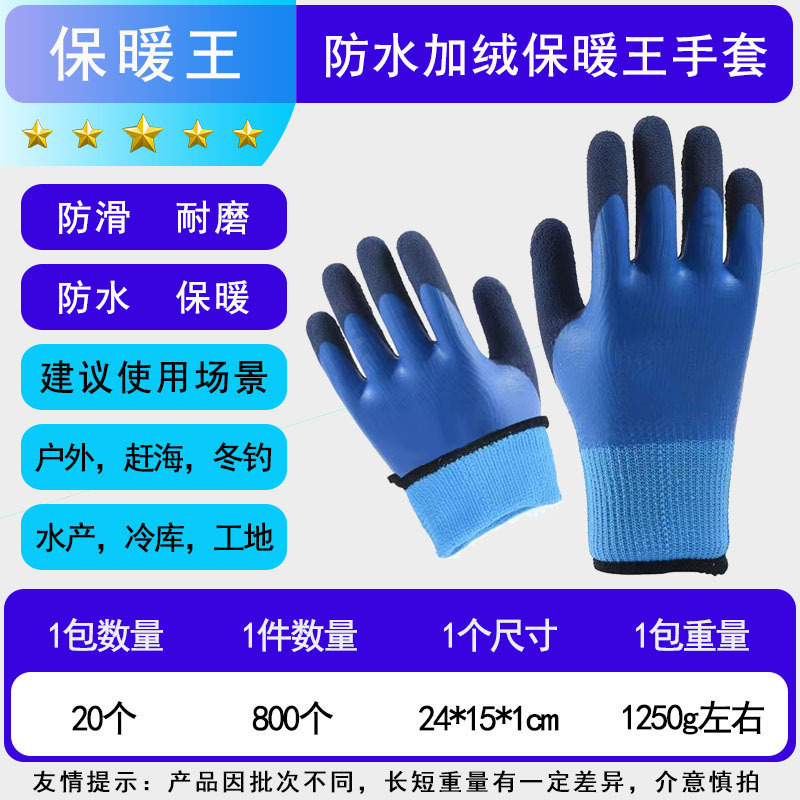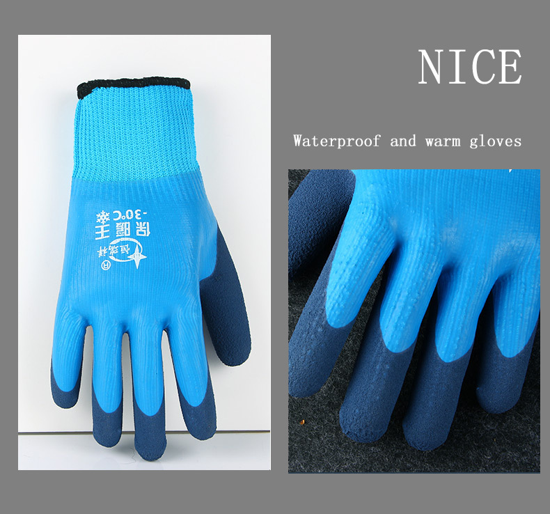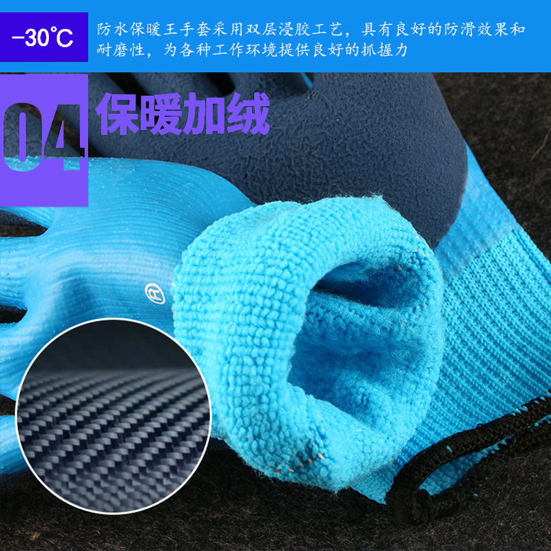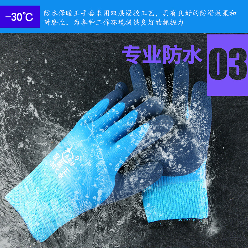 겨울 방수 및 따뜻한 냉장 보관 벨벳 내마모성 두꺼운 고무 함침 겨울 두꺼운 방한 노동 보호 장갑 도매스토어 가기