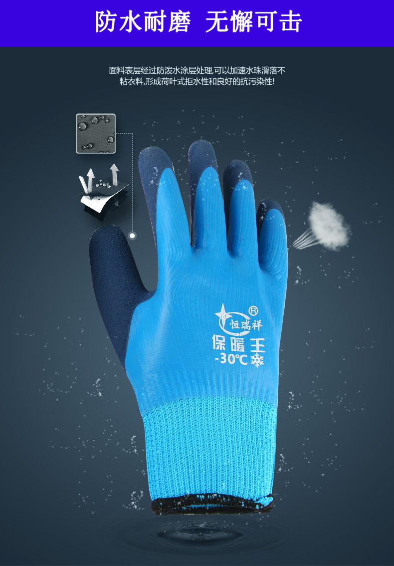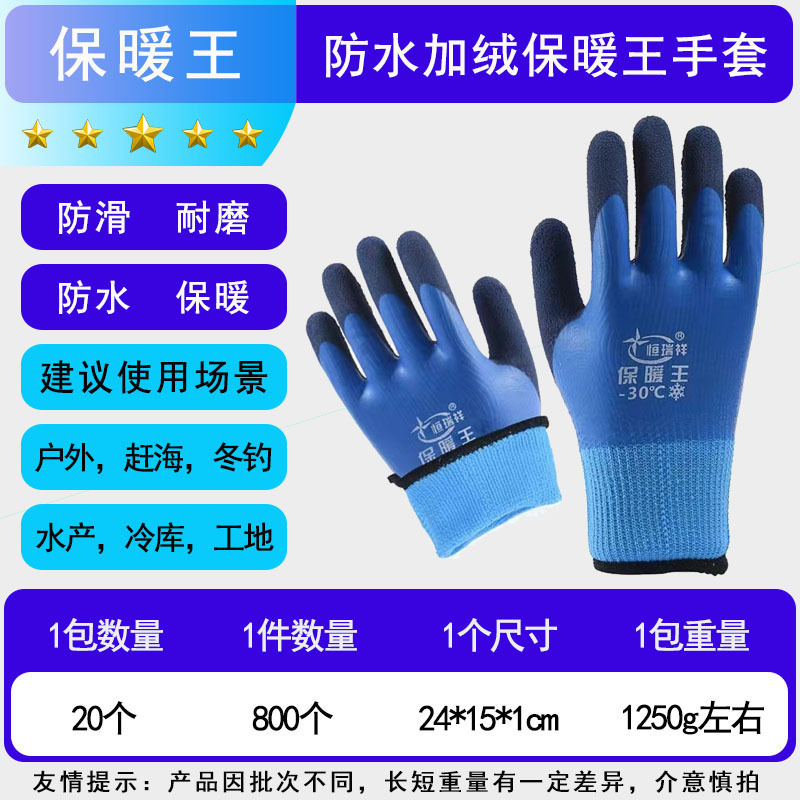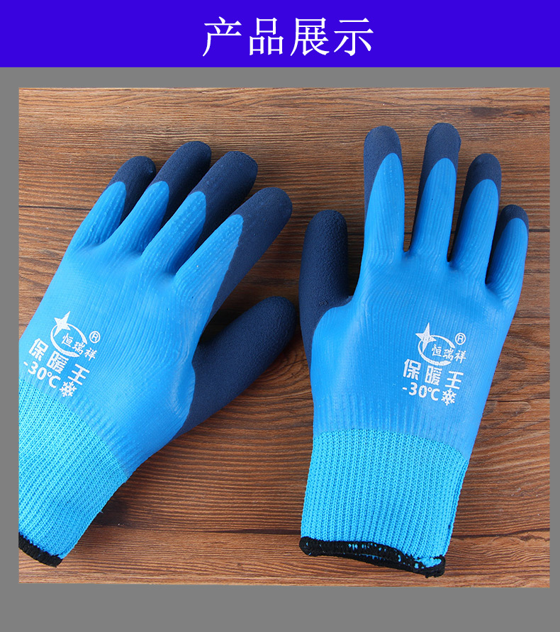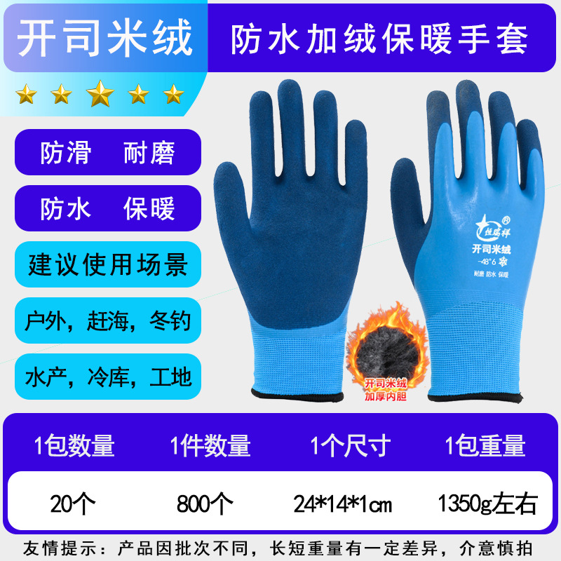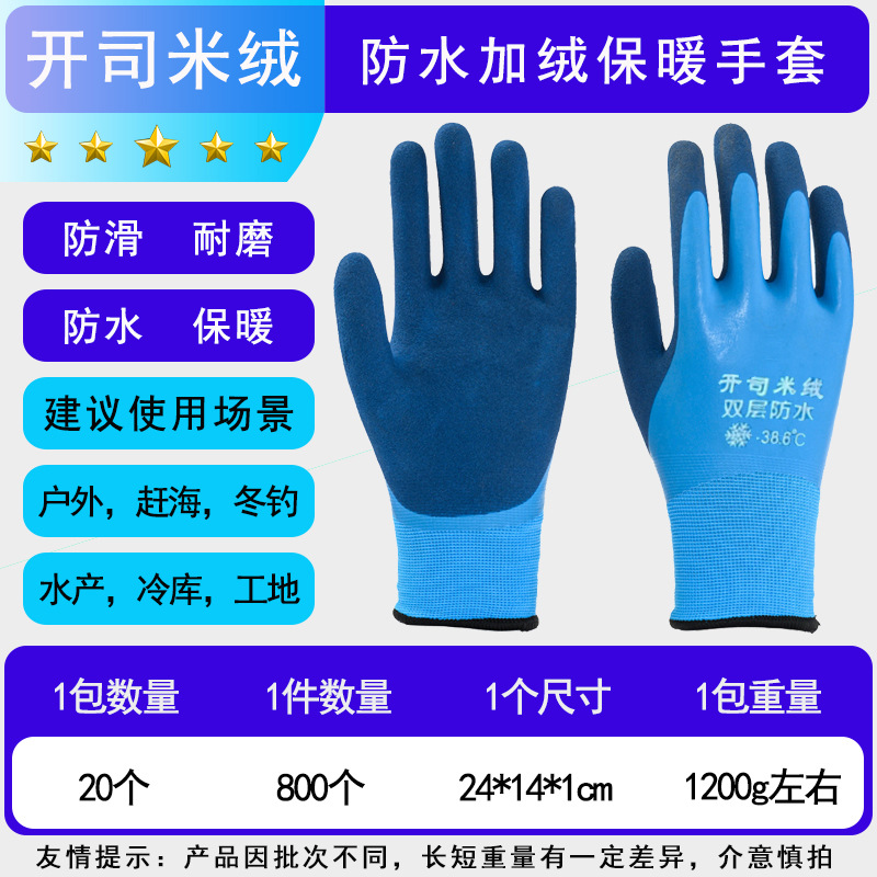 겨울 방수 및 따뜻한 냉장 보관 벨벳 내마모성 두꺼운 고무 함침 겨울 두꺼운 방한 노동 보호 장갑 도매스토어 가기