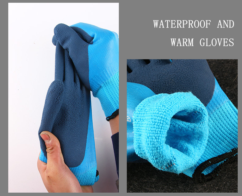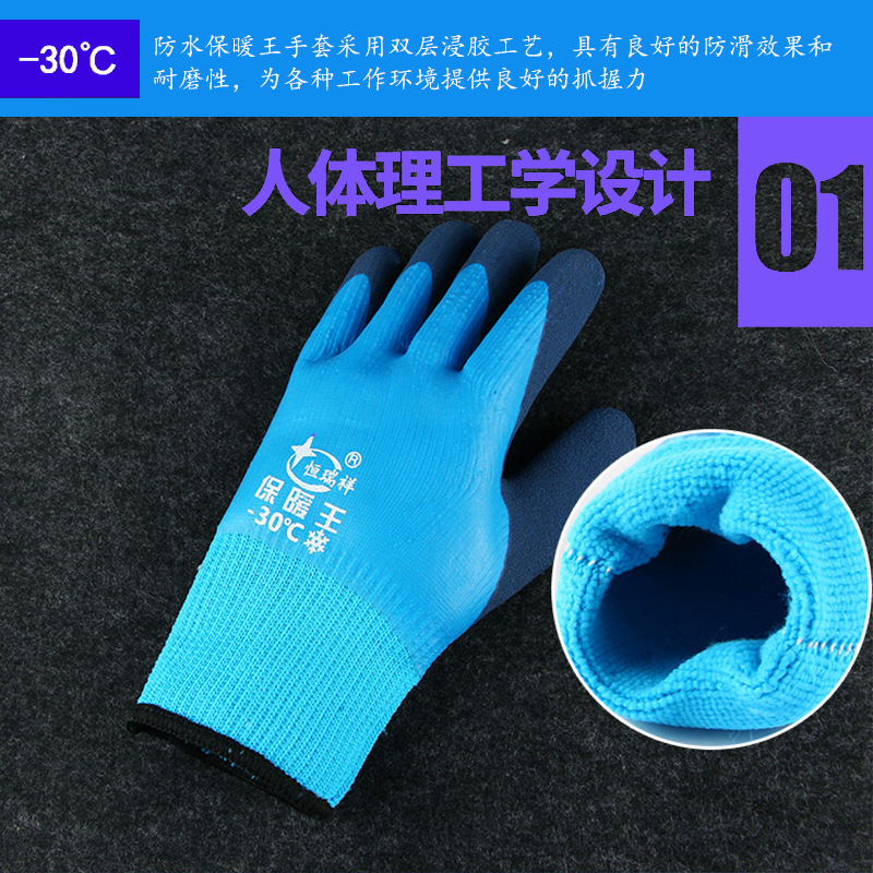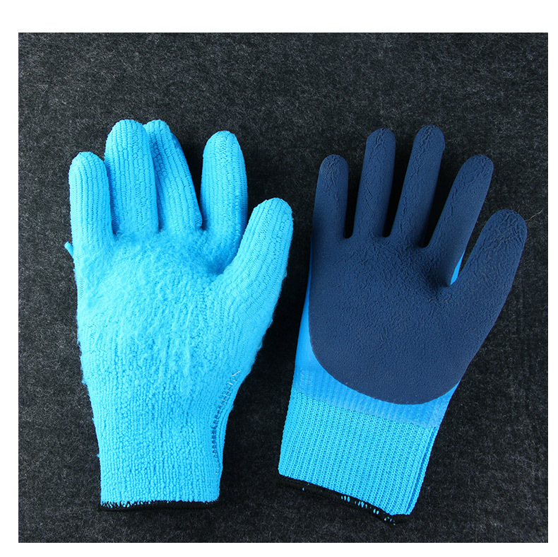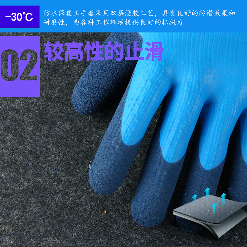 겨울 방수 및 따뜻한 냉장 보관 벨벳 내마모성 두꺼운 고무 함침 겨울 두꺼운 방한 노동 보호 장갑 도매