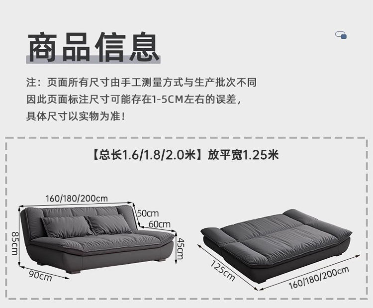 세일링 패브릭 소파 베드 일체형 접이식 이중 용도 2025 새로운 모던 심플 거실 작은 아파트 게으른 싱글 및 더블스토어 가기